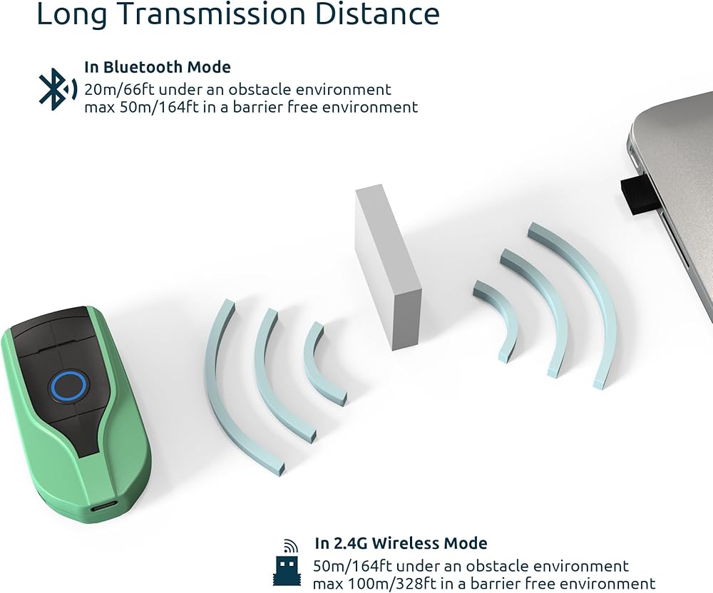 NADAMOO Wireless Mini Barcode Scanner 1D Bar Code Reader Compatible with Bluetooth,2.4G Wireless & USB Wired Connection,Portable Barcode Reader for Inventory Library Supermarket