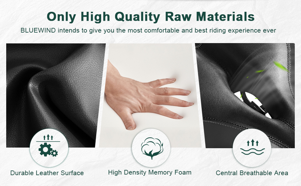 Safe Riding - With red reflective strips on the back of the seat, more eye-catching & safety when riding at night or in rain days. Surface of BLUEWIND bike seat is microfiber artificial waterproof leather, high abrasion resistance, high tear strength and long service life.