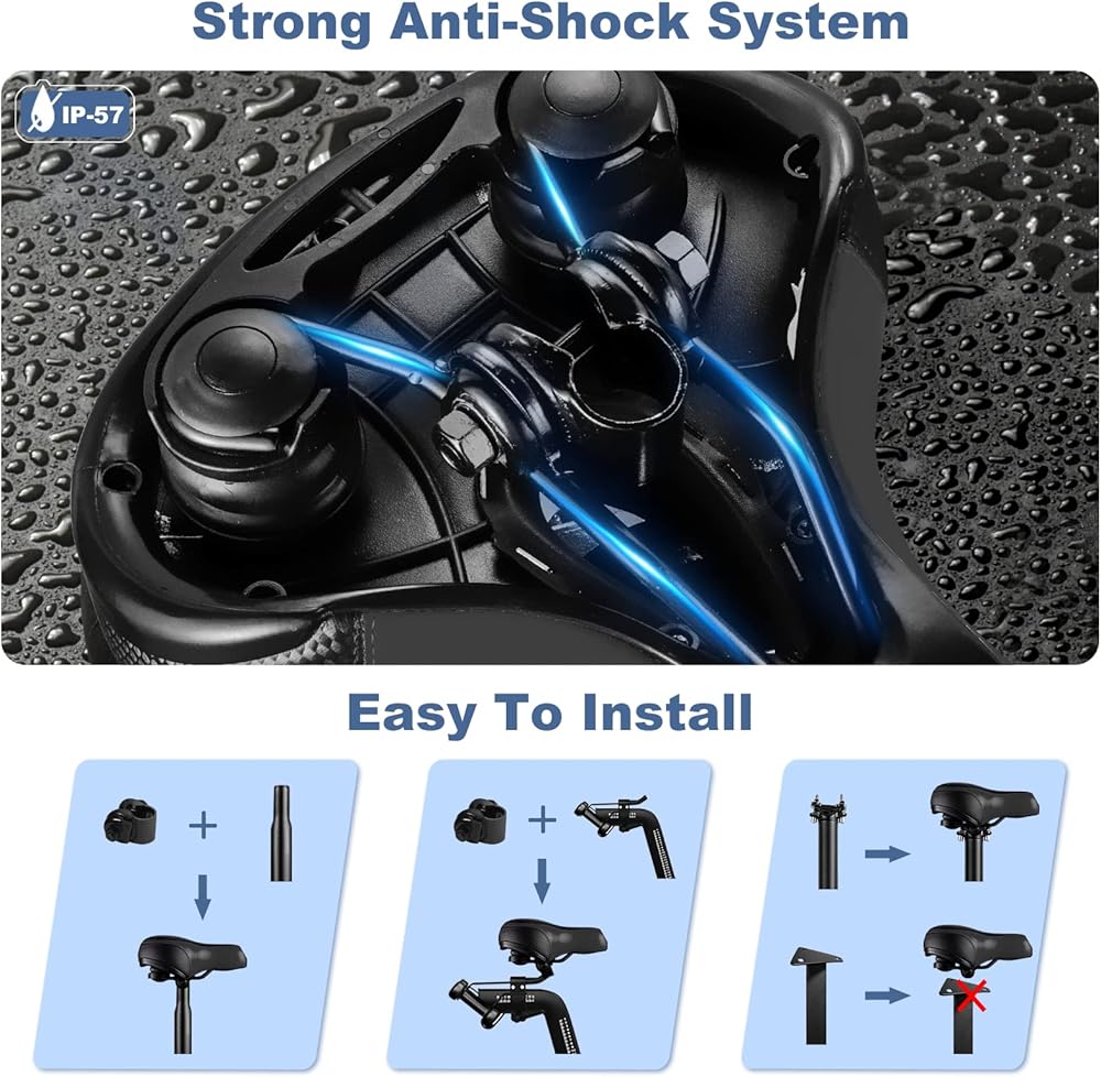 Triple Decompression Effect – Design curved technology suspension damping bow and dual shock absorbing ball can better absorb shock. Well-designed saddles are smoother, softer and more flexible. You will have a smooth and more comfortable journey.