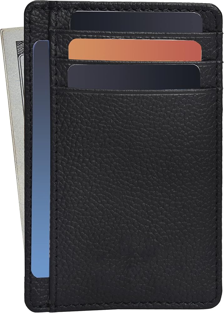 ★PRACTICAL FEATURES : Comes in ONE_SIZE 4.4 x 3.7 x 0.4 inches. It has 5 Credit Card slots and 1 ID window, 1 Note compartment and 1 Extra Pocket for any documents you like. This wallet is unlike other wallet which has more than extra or less than required space.