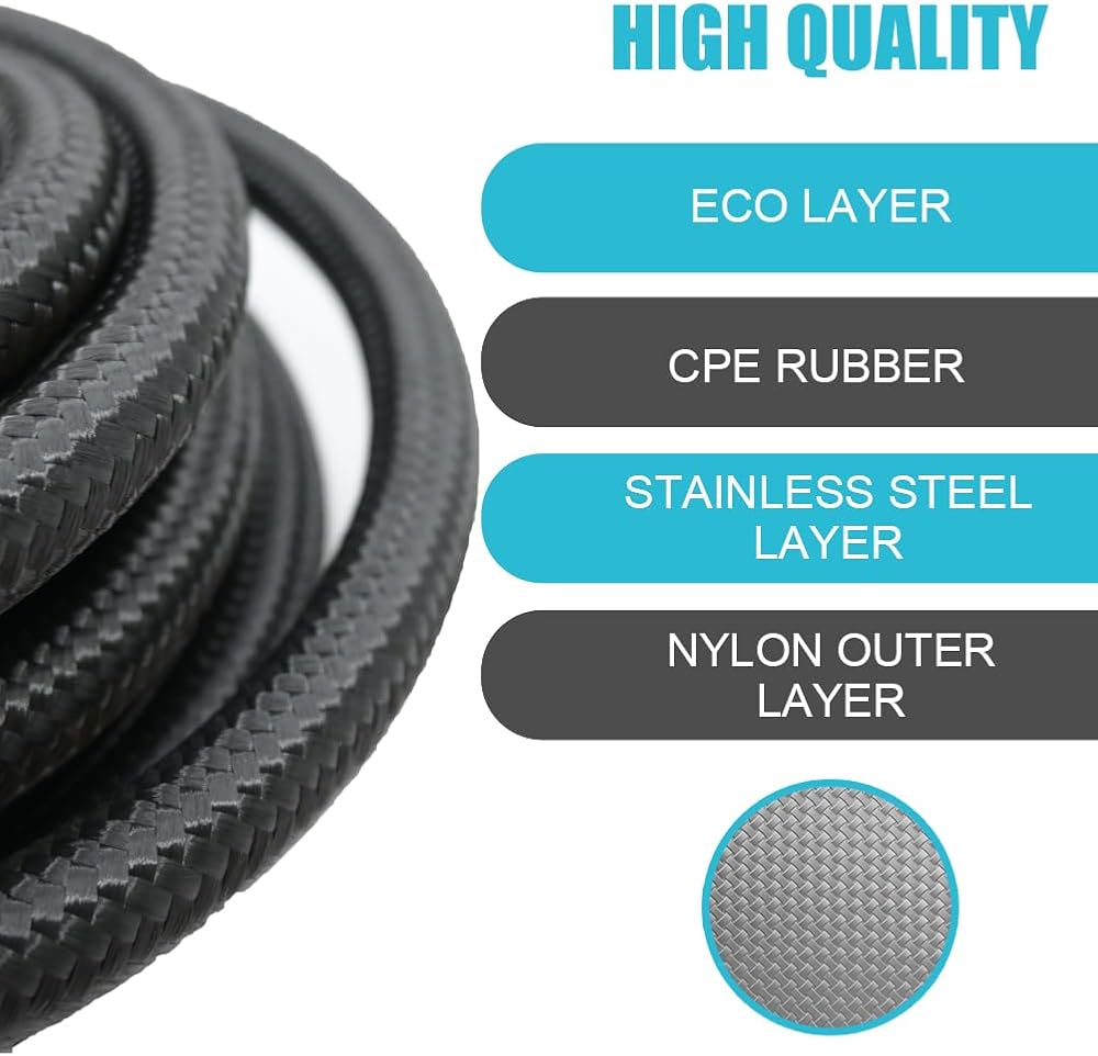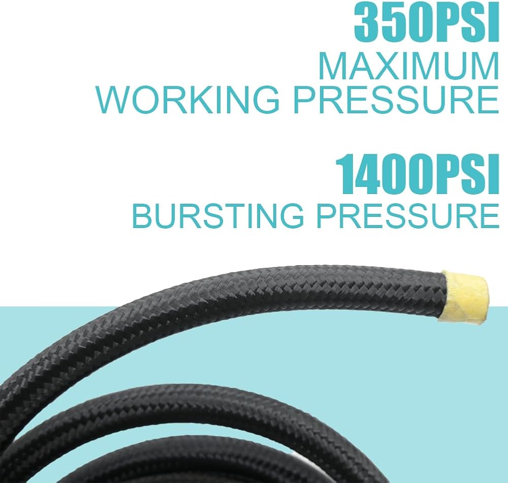 ✅NYLON BRAIDED - The braided fuel line can stand-104ºF to +302 ºF/-40ºC to +150ºC, 350 PSI Working Pressure Tolerance, the fuel line has good retardancy and excellent corrosion resistance.Best for the brake system, fuel pump, fuel filter, oil return, fuel return system, turbo cooler system, and transmission system, oil cooler kit, ect..