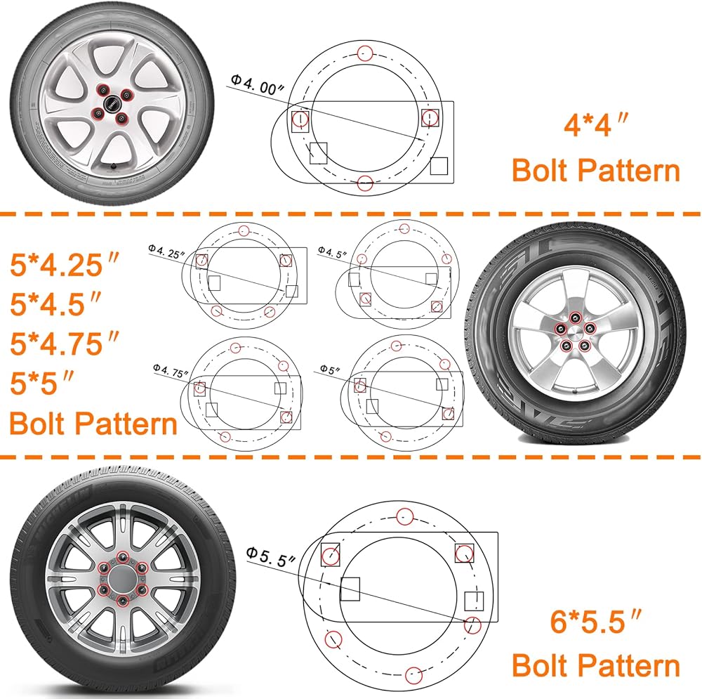 【Compatibility】: Stainless Steel Material Spare Tire Carrier, Fits Most 4 & 5 & 6 Lugs Wheels on 4", 4.25'',4.5'', 4.75'', 5" or 5.5" Bolt Patterns Easy to Install