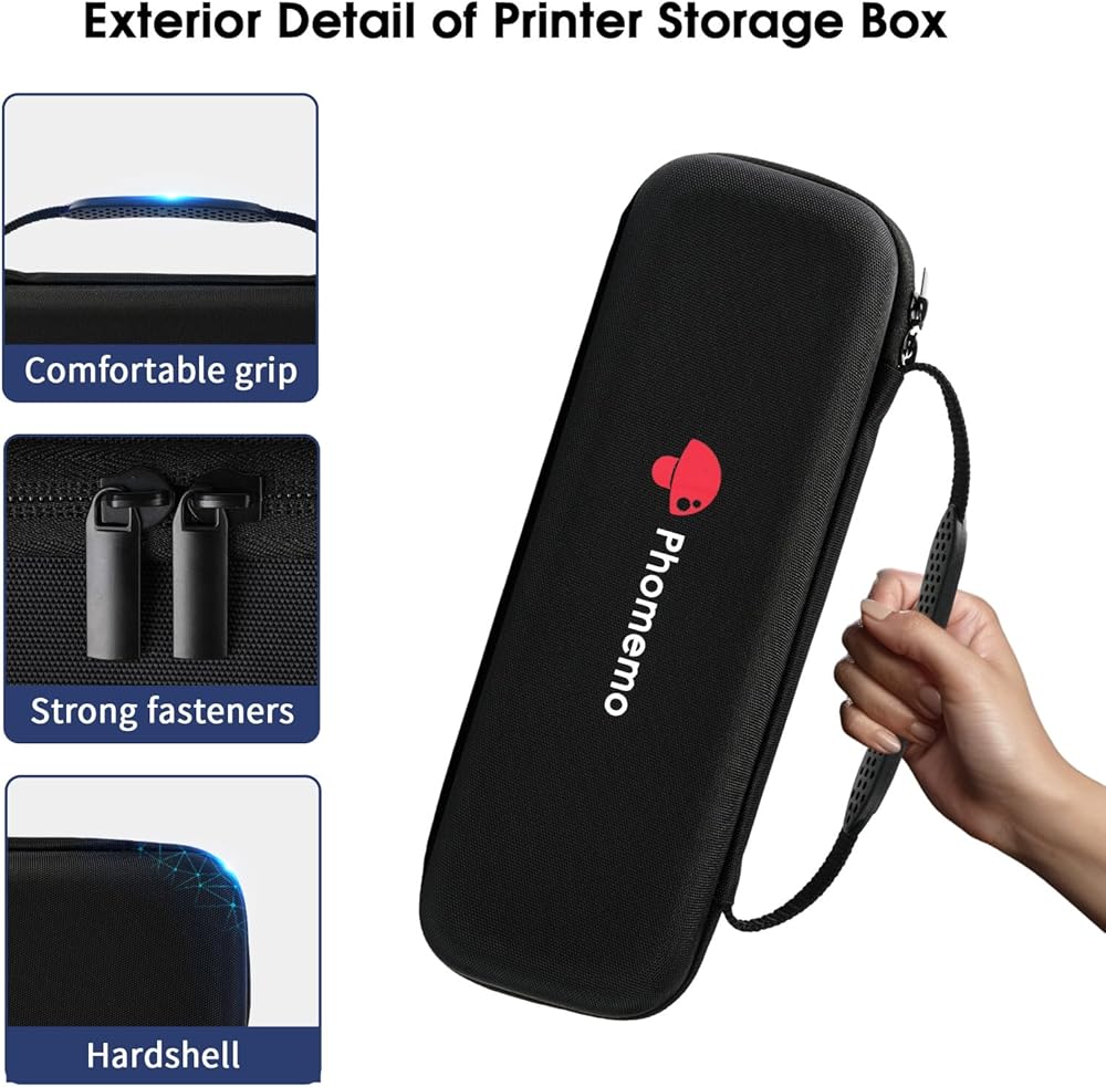 Phomemo Carrying Case, Compatible with TATTMUSE A285M/M832/M834/M835/M832D Portable Printers - Wireless Mobile Travel Storage for Printer, Paper & USB Cable - Box Only