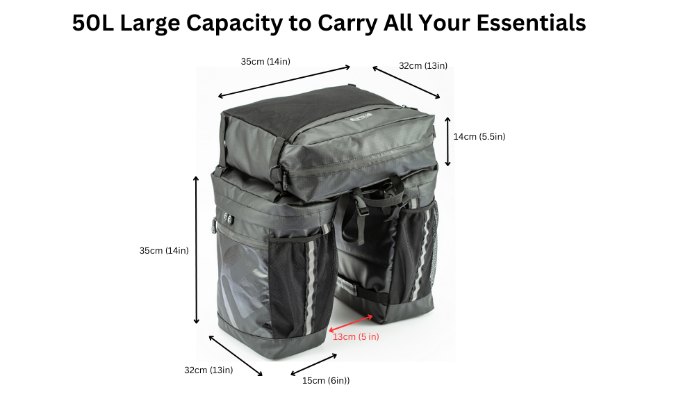 Exceptional Capacity: The 50L bike pannier offers ample storage space, allowing you to carry all your essentials during long distance cycling trips. Say goodbye to limited storage and enjoy the freedom to bring everything you need. Even if you are looking for a saddle bag or trunk, it could be a great alternative for both.
