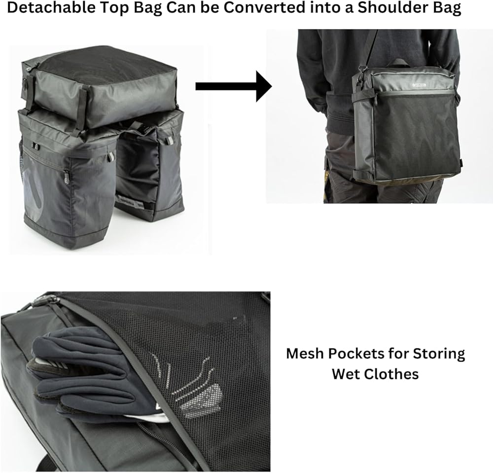 Versatile Design: This bike pannier is not just for cycling. With its functional design, the top bag can also be used as a shoulder bag off the bike, which is a seamlessly transitions from your bike to your everyday activities, making it a versatile accessory.