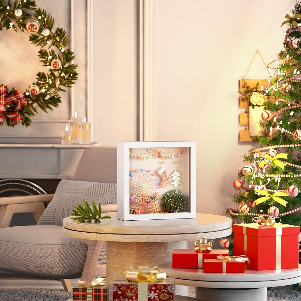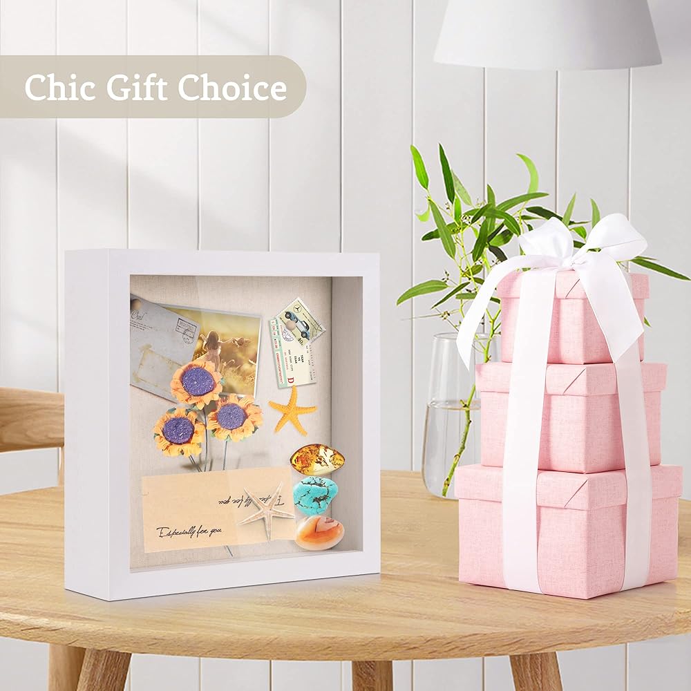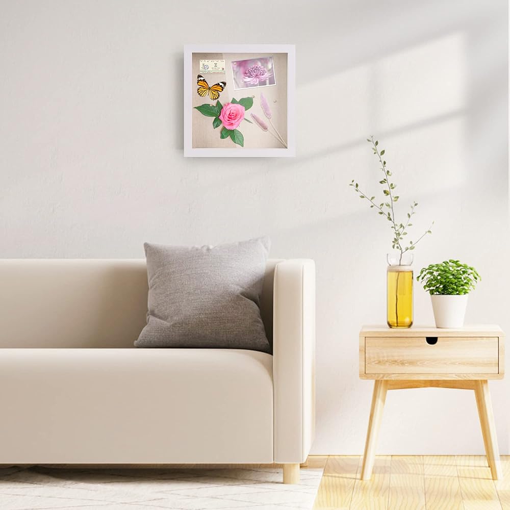 Love-KANKEI Shadow Box Frame 11x11 Shadow Box Display Case with Solid Wood Frame and Removable Glass Window Memory Box for Memorabilia Photos Awards Medals Gift White