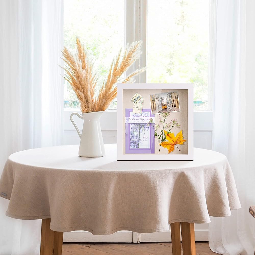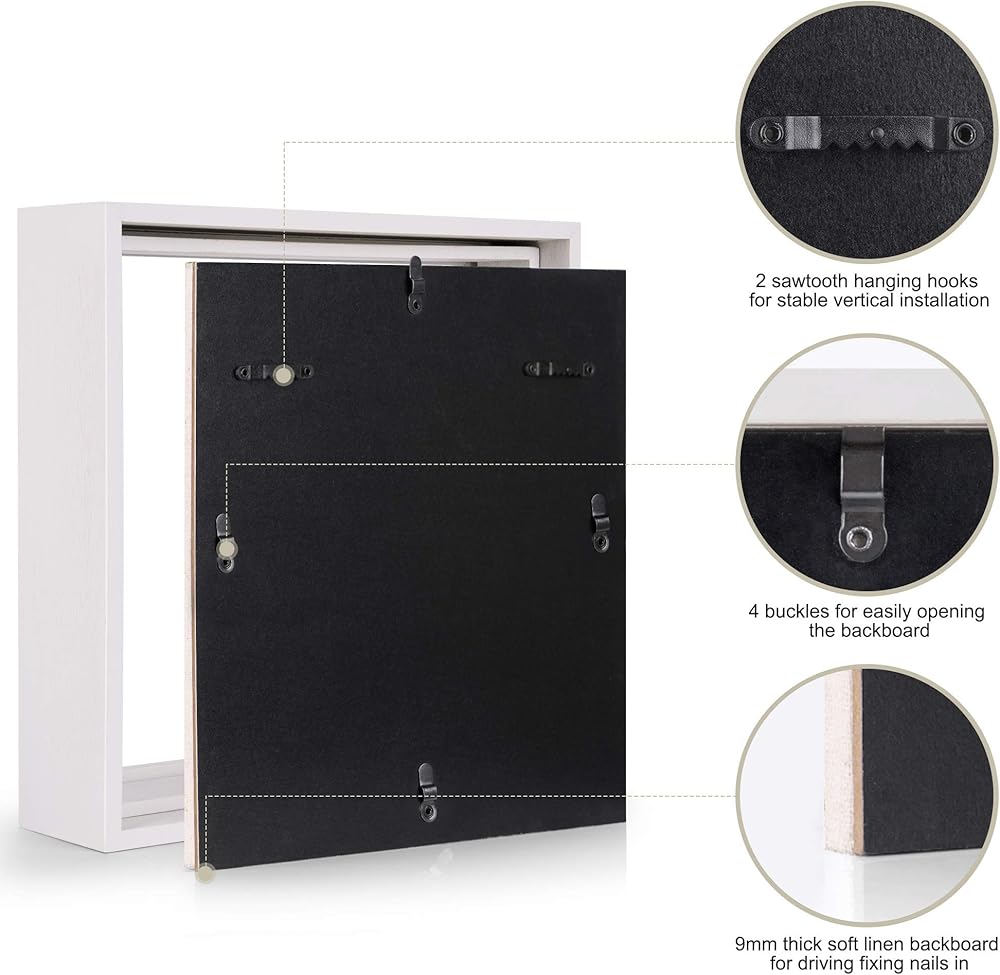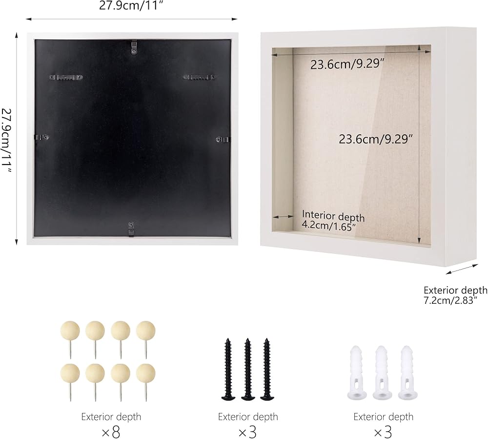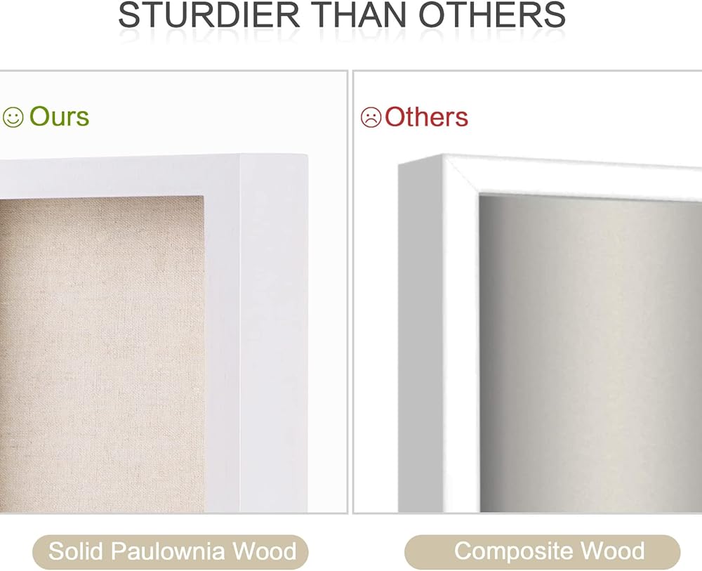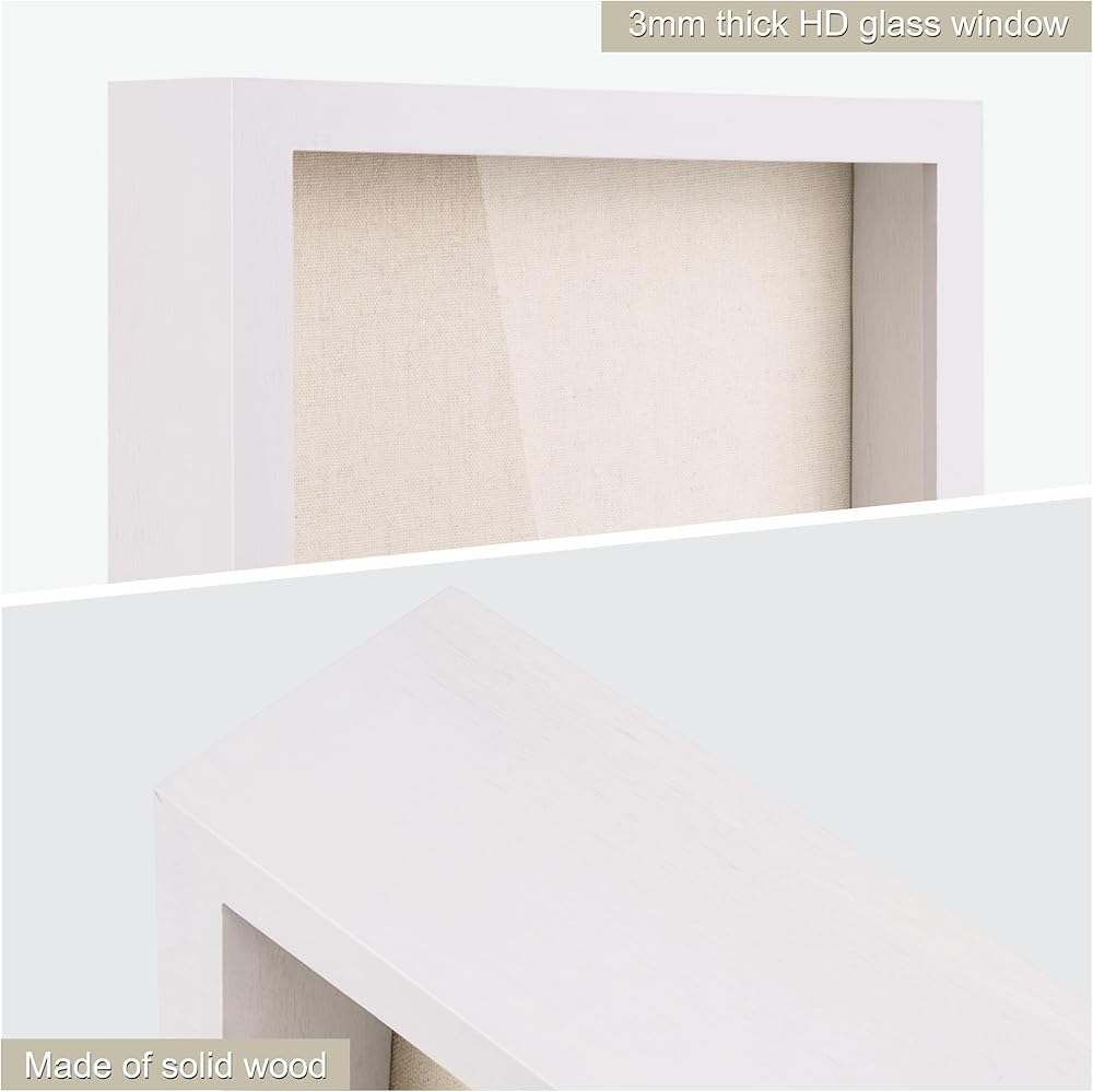 Premium material - This 8×10 deep shadow box made of solid wood frame, 3 mm thick high-definition polished glass, and soft linen backboard with 4 fixing pins can perfectly protect your cherished photos or collectables