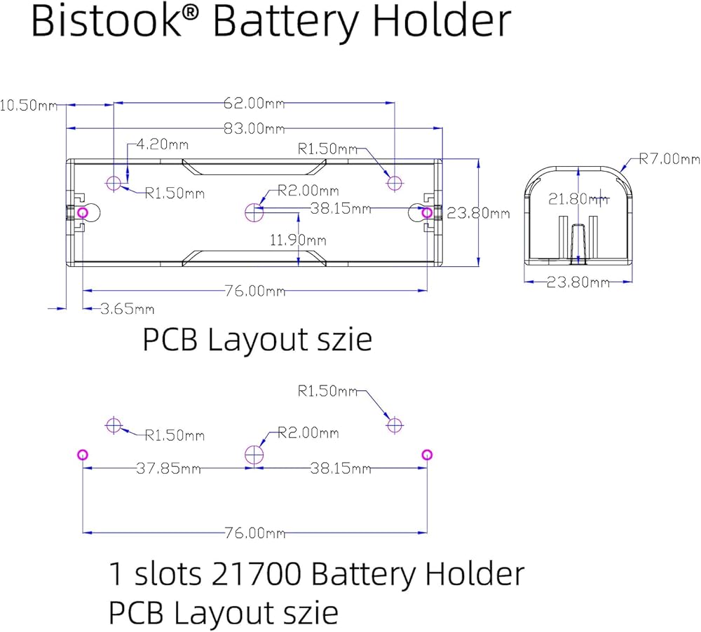 Easy installation & Removal: The 21700 Battery Slot is designed for easy installation.you only need to install the battery easily, and then it can be used with the PCB board.When you need to remove the battery, simply take it out.