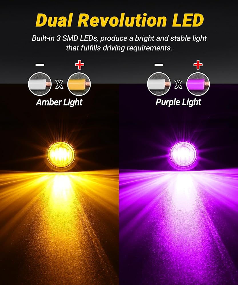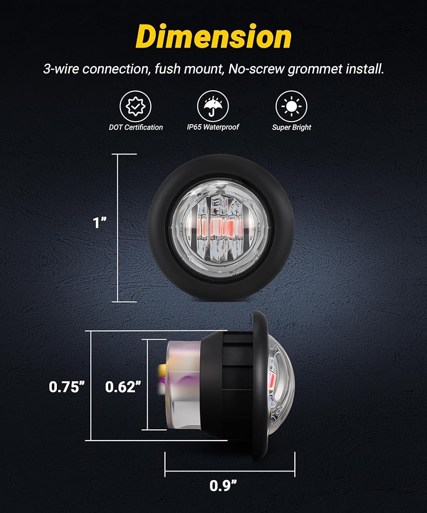Enhanced Visibility: XtraGlow dual function 3/4" LED marker lights feature three powerful SMD LEDs, providing exceptional brightness and a steady light output, ensuring optimal visibility on the road. Package includes 10Pcs 3/4" dual revolution marker lights.