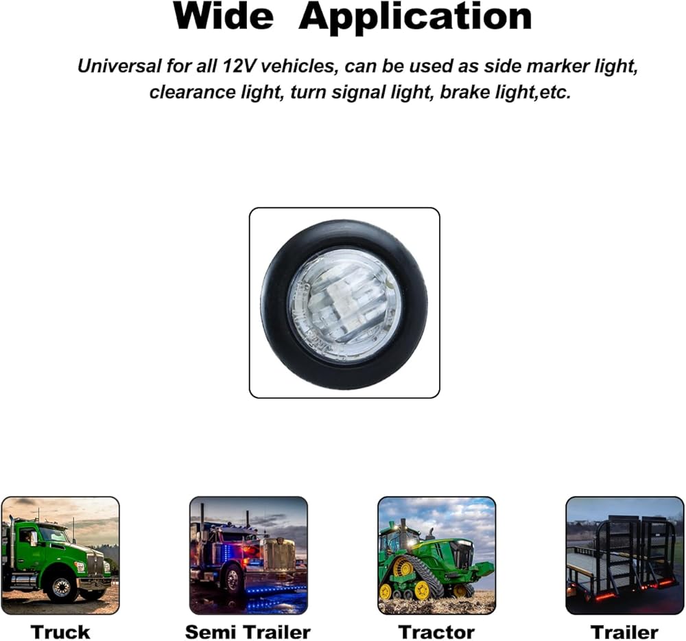 Versatile Usage: Designed for multiple applications, this 3/4" LED marker light serves as a side marker light, clearance light, turn signal light, brake light, parking light, reverse light, auxiliary light, identification light, fender light, trailer tail light, running light, or decorative light. Its versatility makes it suitable for various vehicles and purposes.