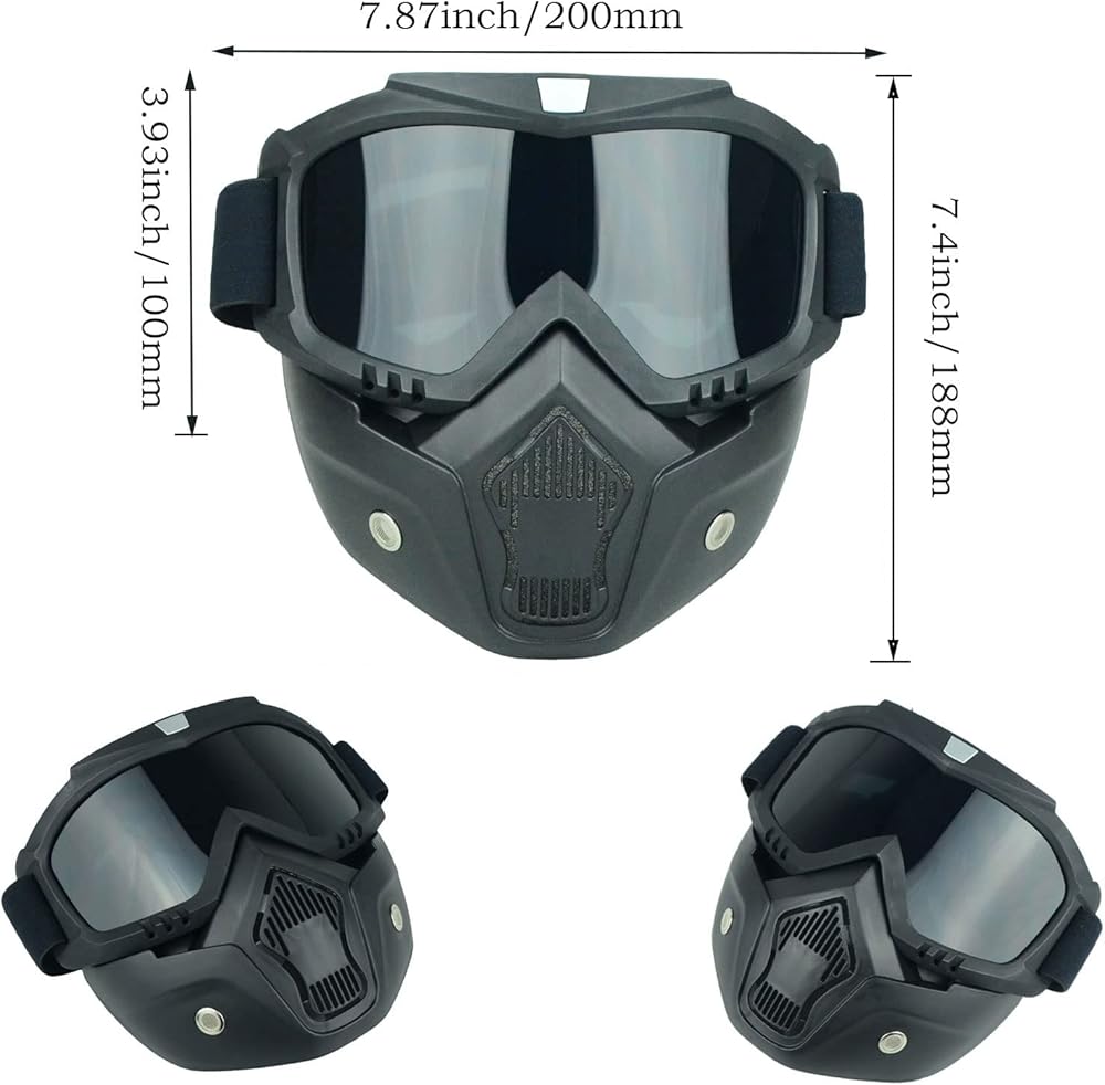 【COMFORTABLE & PRACTICAL】: Motorcycle goggles with detachable mask, so the mask can be used alone. High consistency cotton has great exhaust ventilation for a comfortably wearing. Breathable mouth filter and holes provide better air permeability.