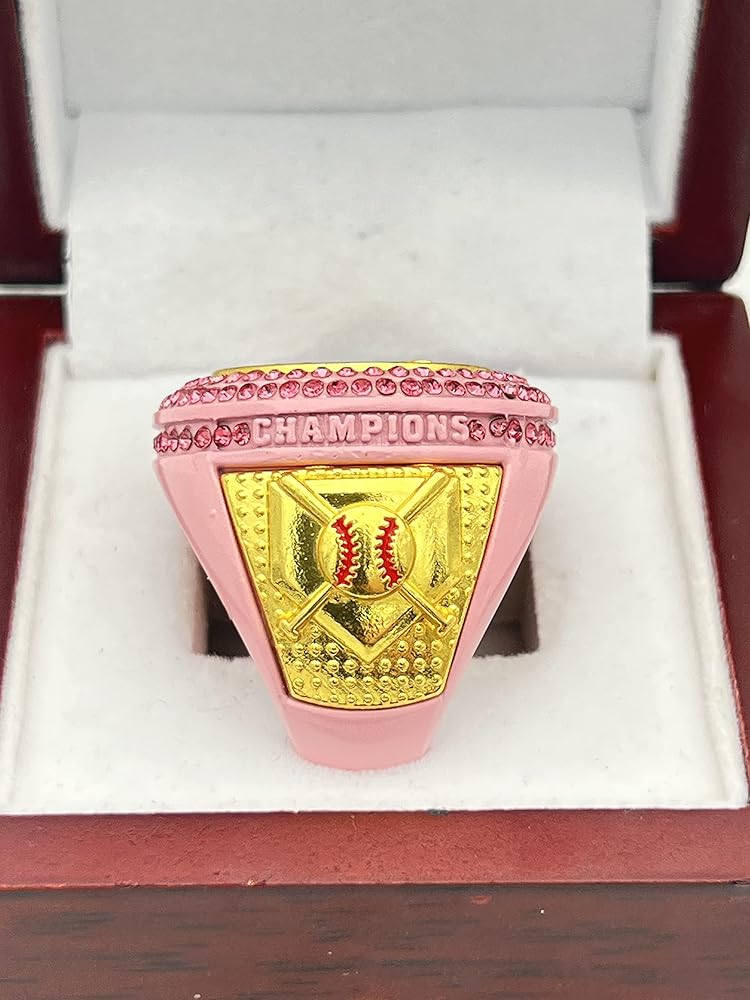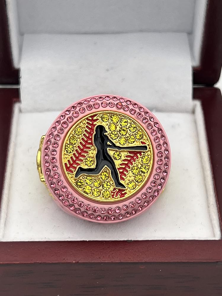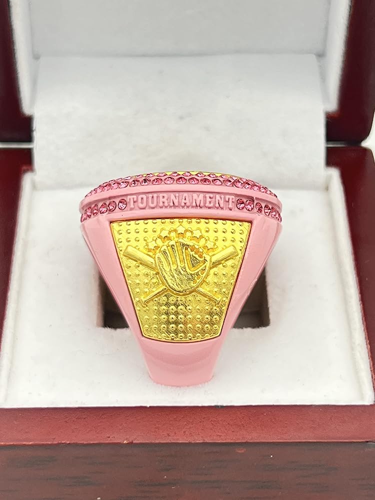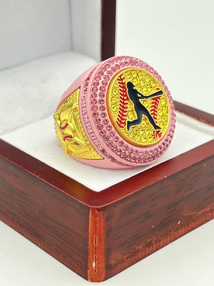 Discount Sports Rings, Softball Batter CHAMPION RING — Player Award, assorted colors and gemstones (Pink)