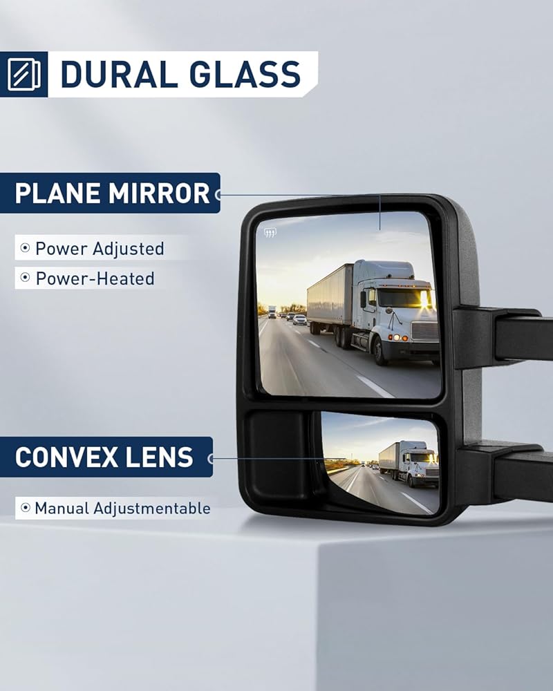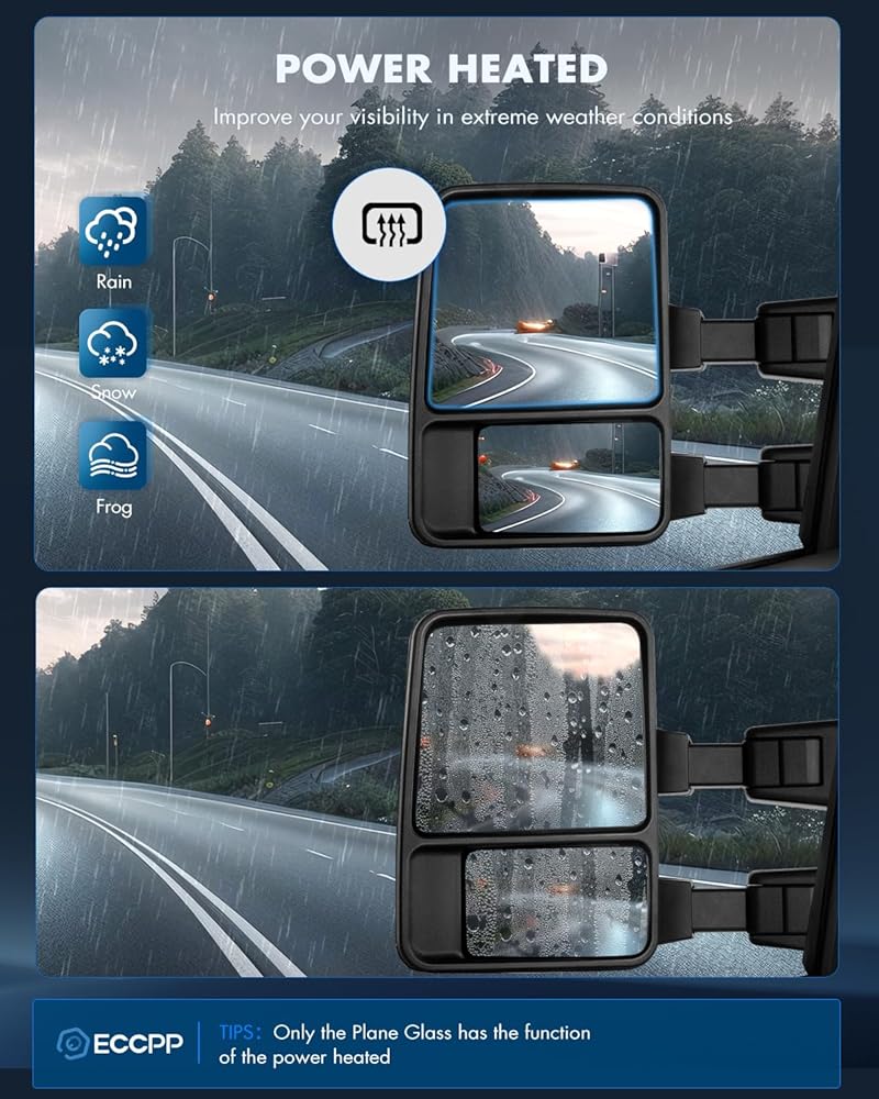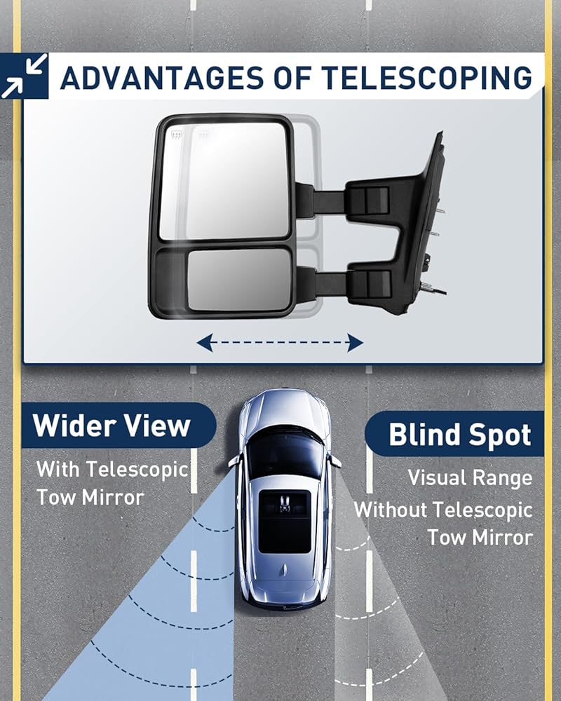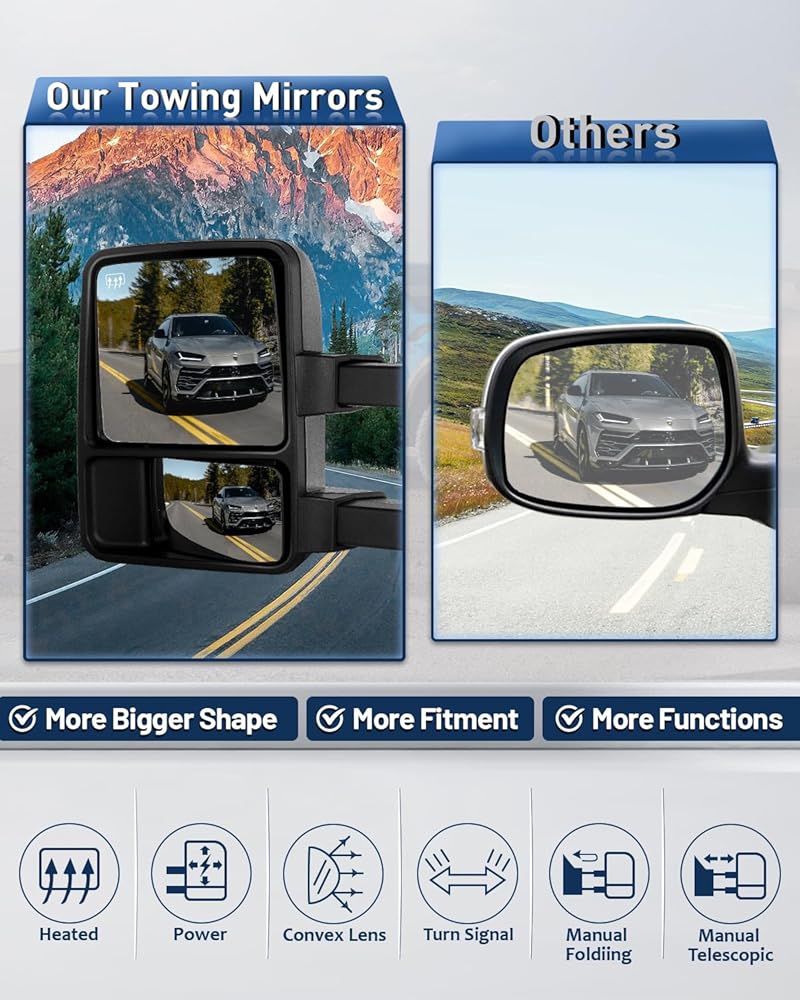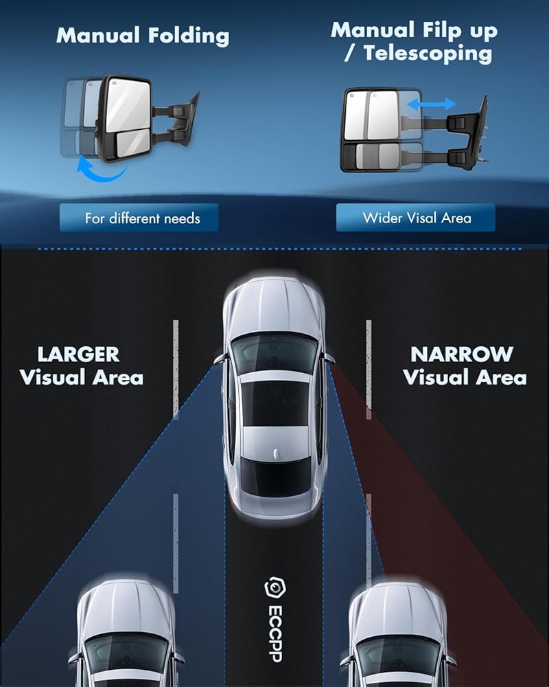 🎄UPGRADED MIRRORS - The towing mirrors provide better and wider angle of rear view, improves visibility and reduces blind spot. Upgrades on road safety