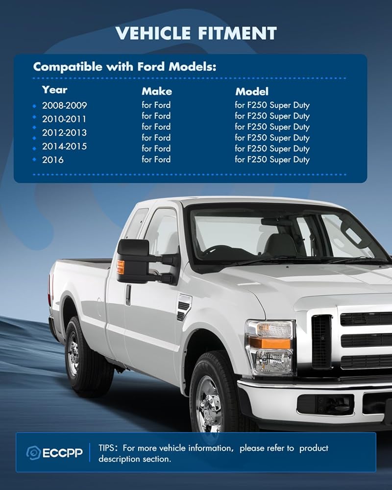 ECCPP Towing Mirrors Replacement Fit For Ford For F250 For F350 For F450 For F550 Power Heated Signal Pair Mirrors 2008 2009 2010 2011 2012 2013 2014 2015 2016