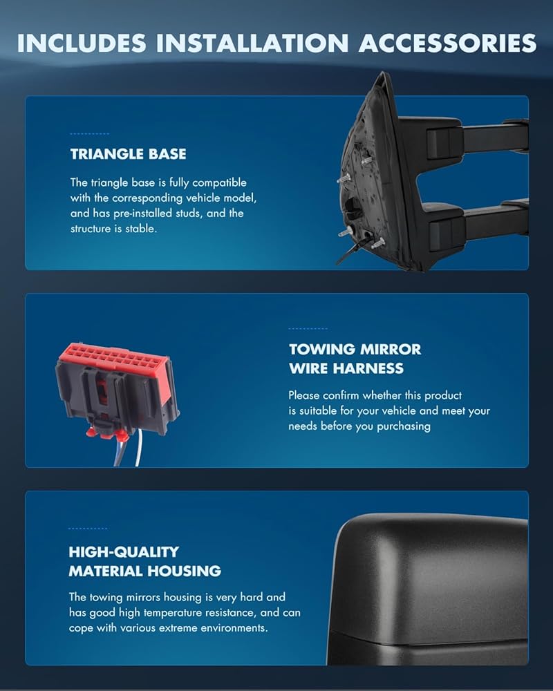 🎄WHAT YOU GET - A Pair of Towing Mirrors(Include Left Side and Right Side) and 1 Year Warranty