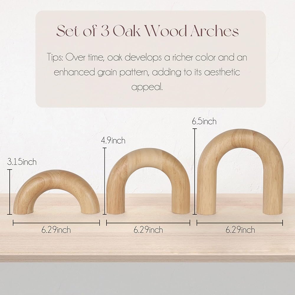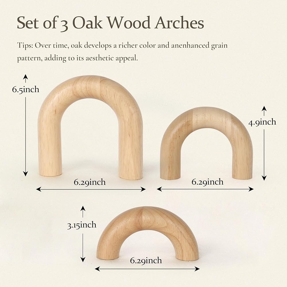 Elegant Wood Arch Set: This set includes three beautifully crafted wood arches, each boasting a distinct and stylish design. Simple yet sophisticated, these pieces are perfect for enhancing the decor of any room.