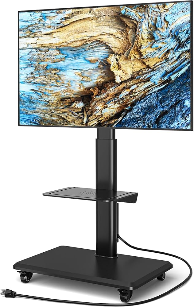 ✔️ Ease of Assembly & Multipurpose Use - All the parts are well marked and packaged, quick and easy to assemble, everything is high quality and reliable. Monitor floor stand fits almost anywhere and the wheels of the tv stand mount allow you to place it in corners, making a small space look larger and tv swivel stand is attractive and modern. Mobile tv cart is also great for a home, bedroom, living room, dorm room, classroom, office, conference rooms, trade shows, hotels and much more.