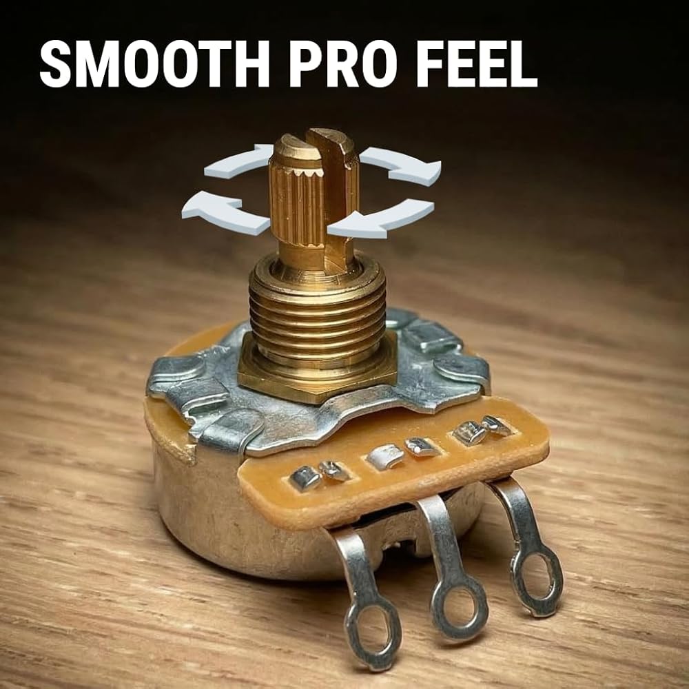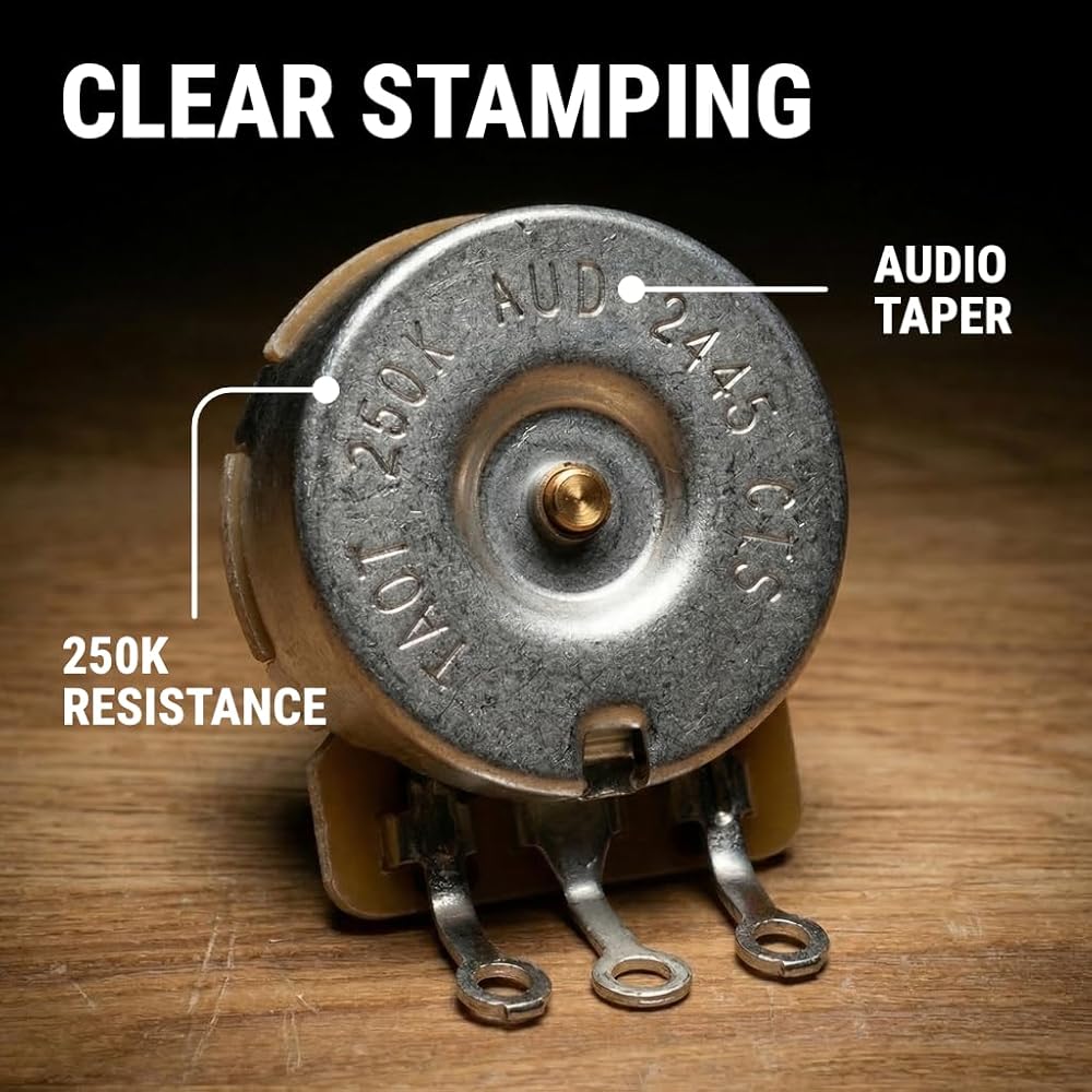 Trusted Industry Standard: Genuine CTS pots with a low torque design and 250k 10% audio-taper offer the same high quality used by top American guitar companies, guaranteeing unmatched volume control and iconic Strat-style functionality.