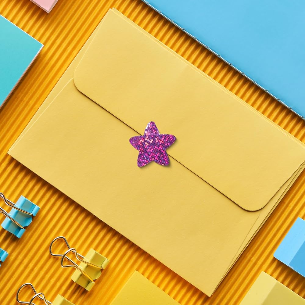 ▶【Wide Application】Foil star stickers can be used in most situations, such as school, home,can be used as reward stickers, decorate snack bags, gift boxes, envelopes, classwork, cards, wrapping paper, laptops and other items.