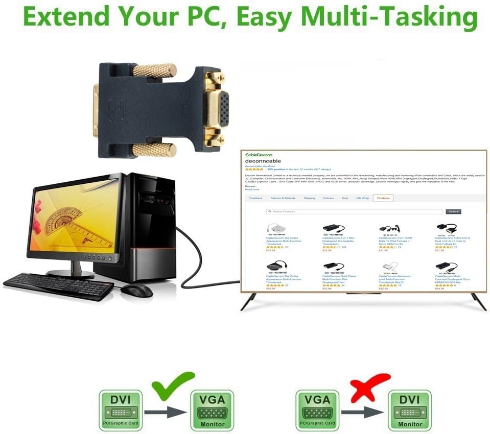 NOTE: This is DVI-D 24+1 to VGA adapter, NOT VGA TO DVI, please make sure your devices are compatible with DVI-D 24+1 interface before purchasing. DVI-D 24+1 Male to VGA Female ennables you to connect a DVI-D 24+1 port eqipped desktop, laptop, video card to a VGA equipped HDTV, monitor, projector or projector