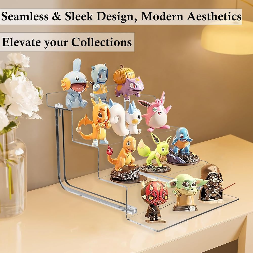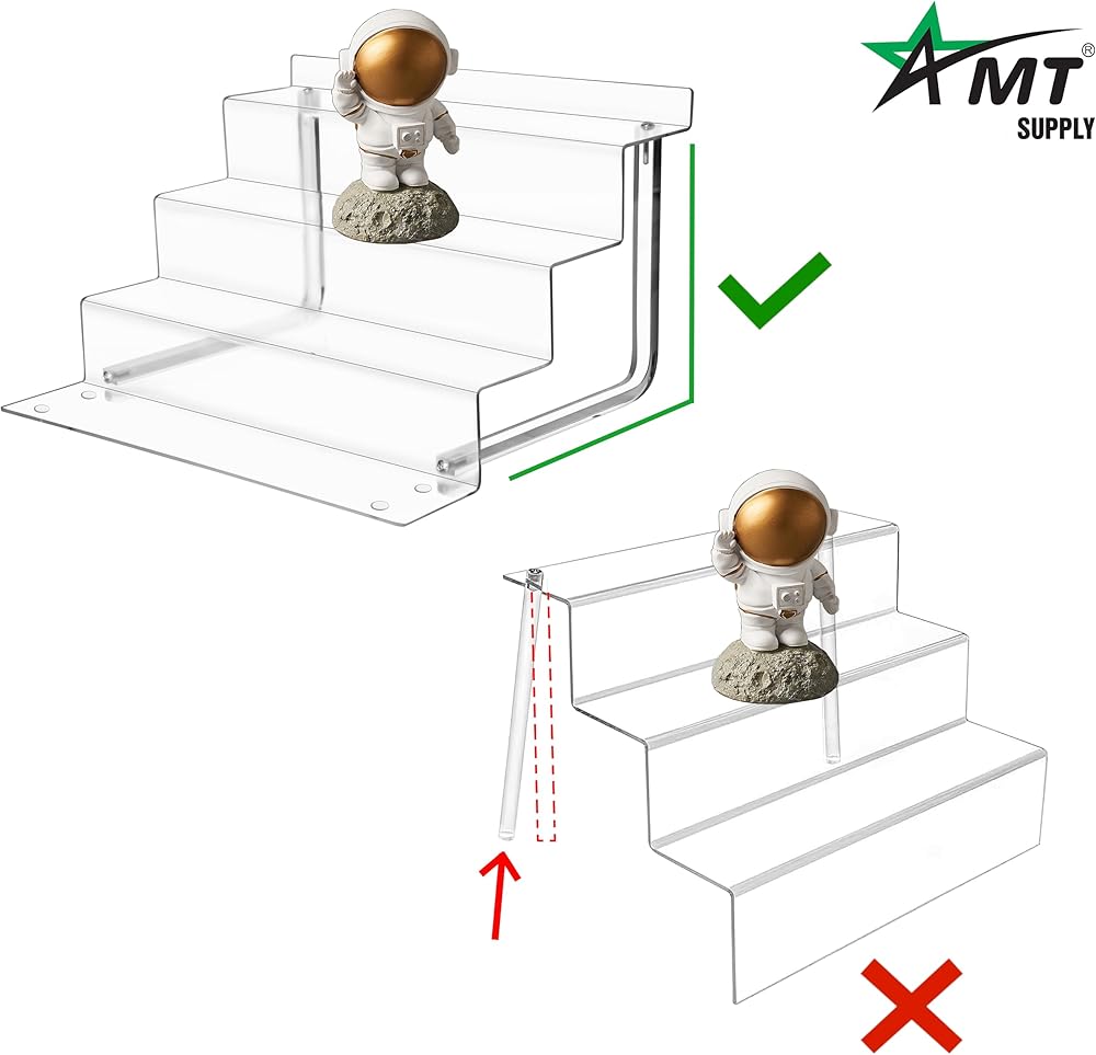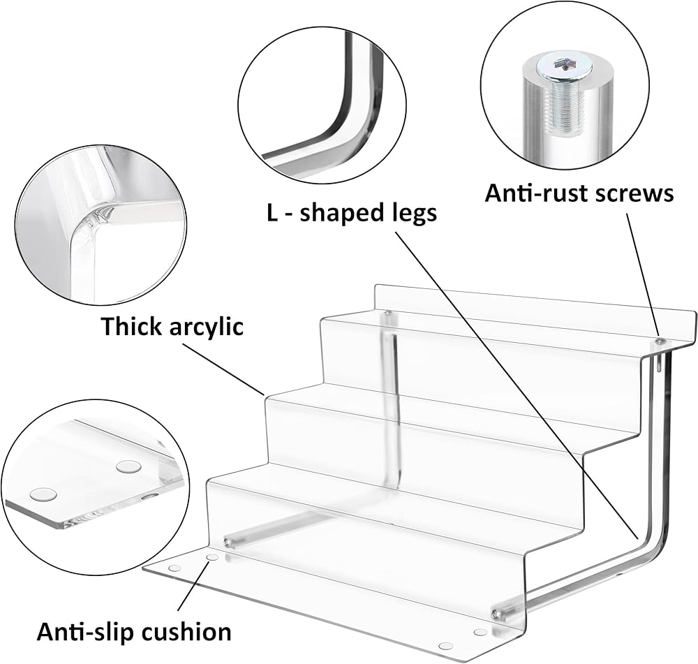 💖 DURABLE and STURDY 💖: Our clear acrylic display shelves are both lightweight and durable, surpassing wood and metal alternatives. Featuring our L-shaped legs on each side, our design offers superior stability and increased load-bearing capacity, securely showcasing your items.