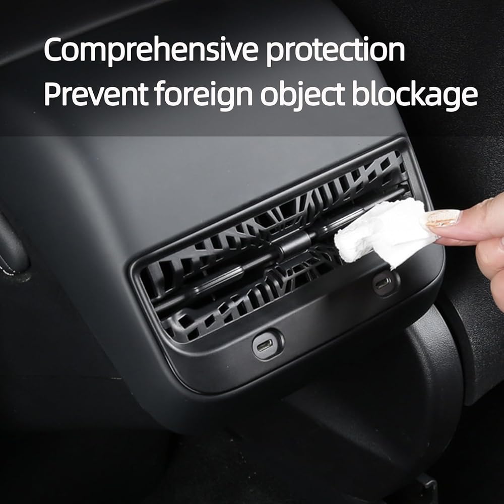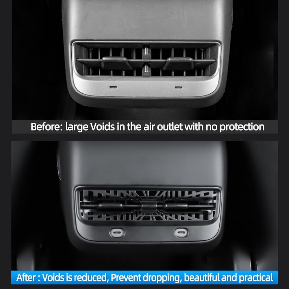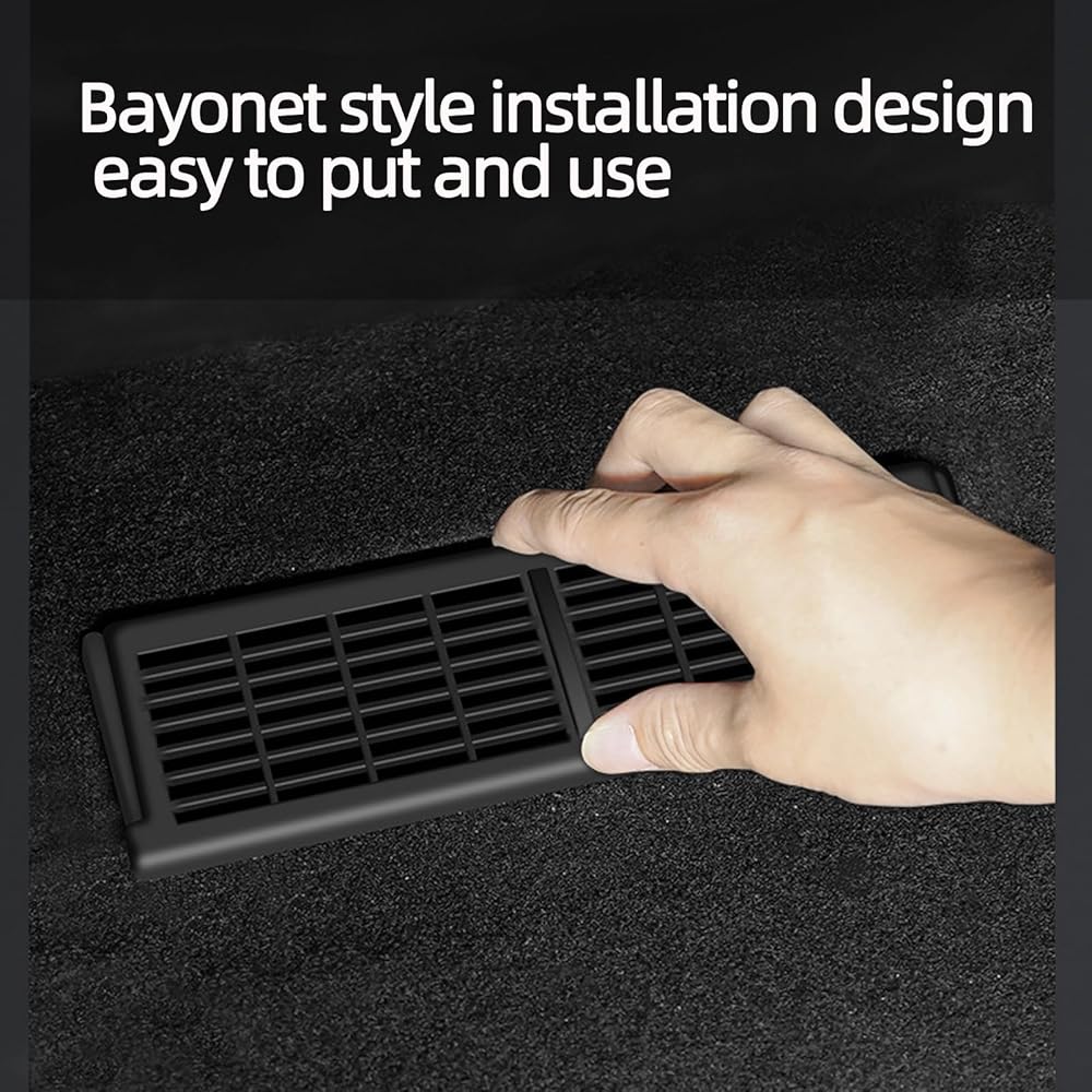 The rear seat ventilation cover is suitable for Tesla 2021 2022 2023 model Y airflow vent grille, which is a perfect fit without any installation tools.