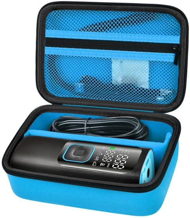 Comprehensive Protection of Air Compressor Bag: Made of ultra-hard eva material, electric air pump holder is smooth and provides a soft touch. Tire air compressor cover is anti-splash, shockproof, and dust-proof. Bike tire pump carrying case can protect pump from scratches and damage. The soft interior gives ball air pump another layer of protection.