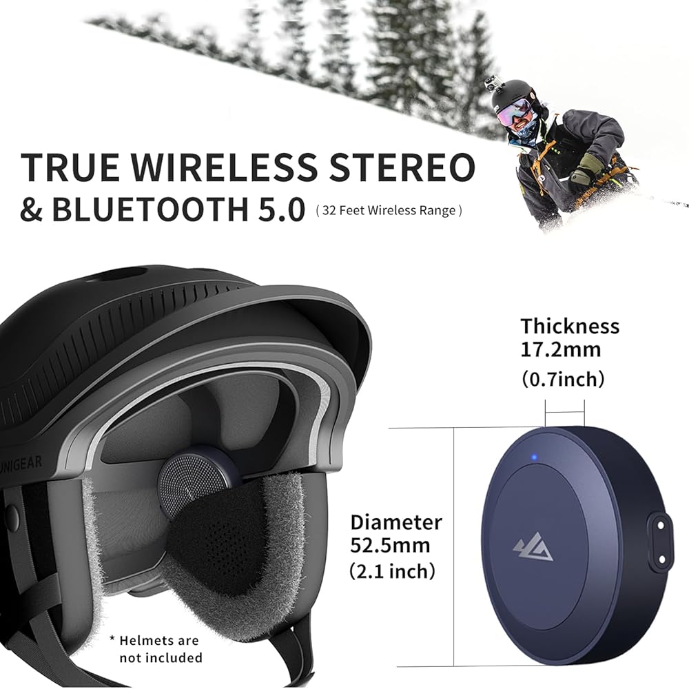 Unigear Ski Helmet Speakers, True Wireless Stereo Snowboard Headphones with HDR Audio, Drop-in Headphones Compatible with Any Audio Ready Ski or Snowboard Helmet, Bluetooth 5.0