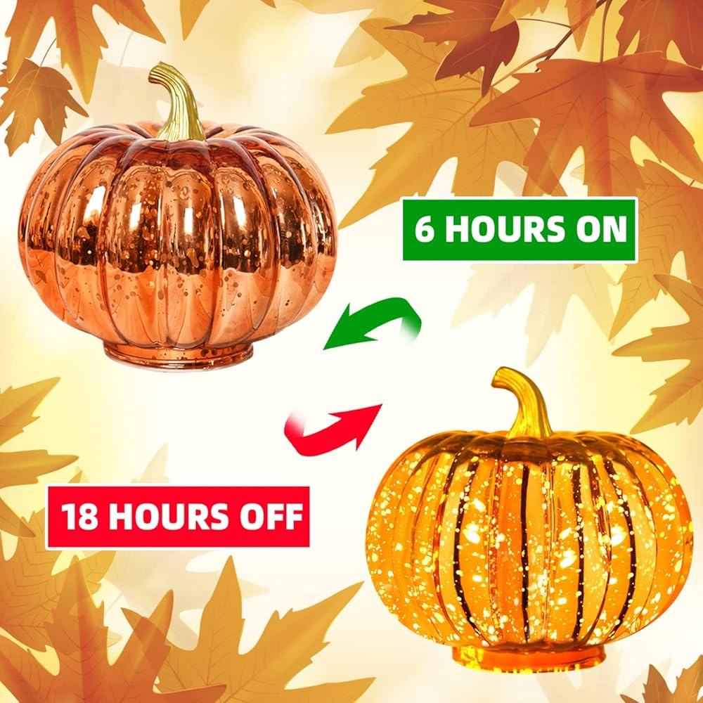 AUTUMN DECORATION: When you light up this golden mercury glass pumpkin LED light, it will emit warm and soft light to illuminate your house and help your home become sweeter and warmer throughout autumn.