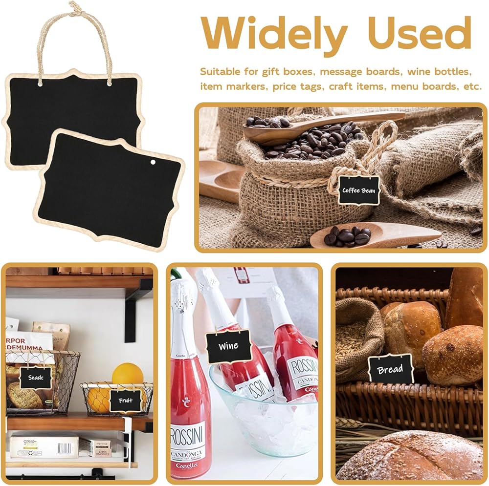 Application: Small wooden chalkboard is suitable for gift boxes, message boards, item markers, wine bottles, price tags, craft items and other decorations, which is very convenient for you to mark information classification.