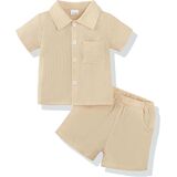 Stylish Design--Cute baby boy outfits with classic collar, cute and fashion to wear. Wide elastic waistband short pants, neither tight nor loose, suitable for indoor or outdoor activities. Your little boy deserve to own one!
