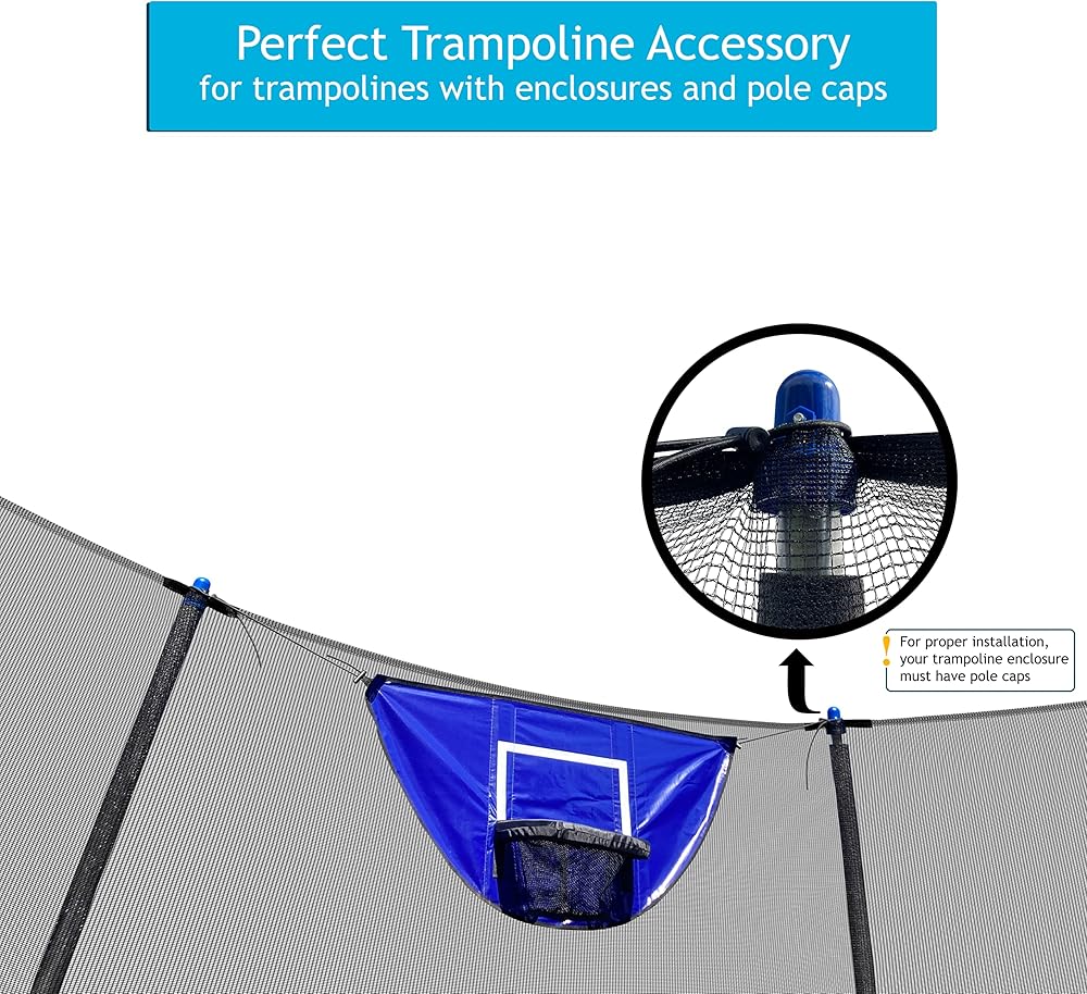 Universal Fit: Effortlessly attach our trampoline basketball hoop around pole caps. Designed for compatibility, it integrates seamlessly with most standard-sized trampolines with enclosures.