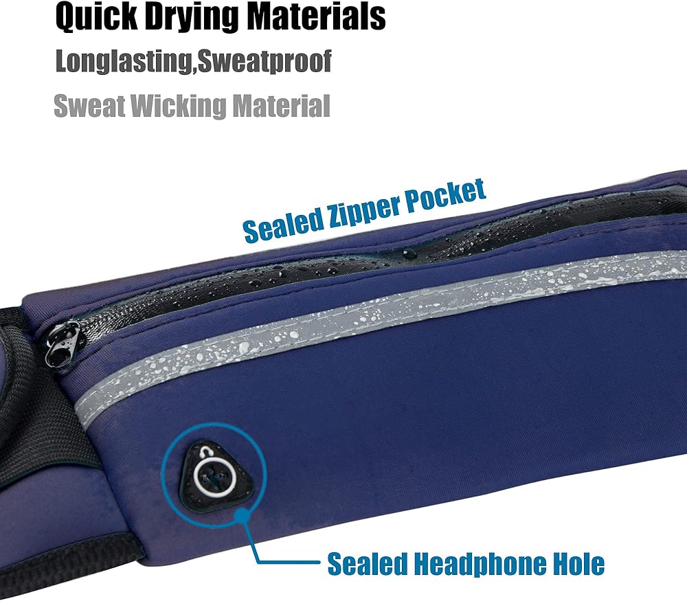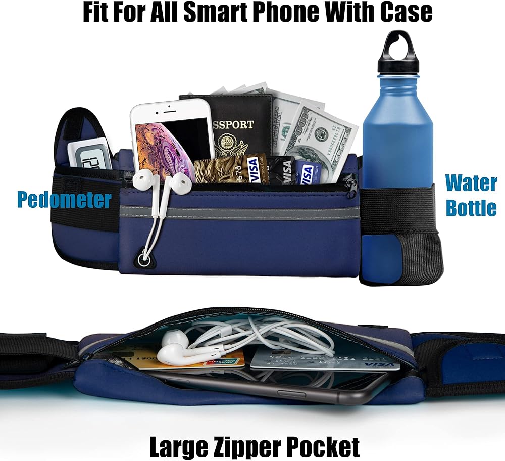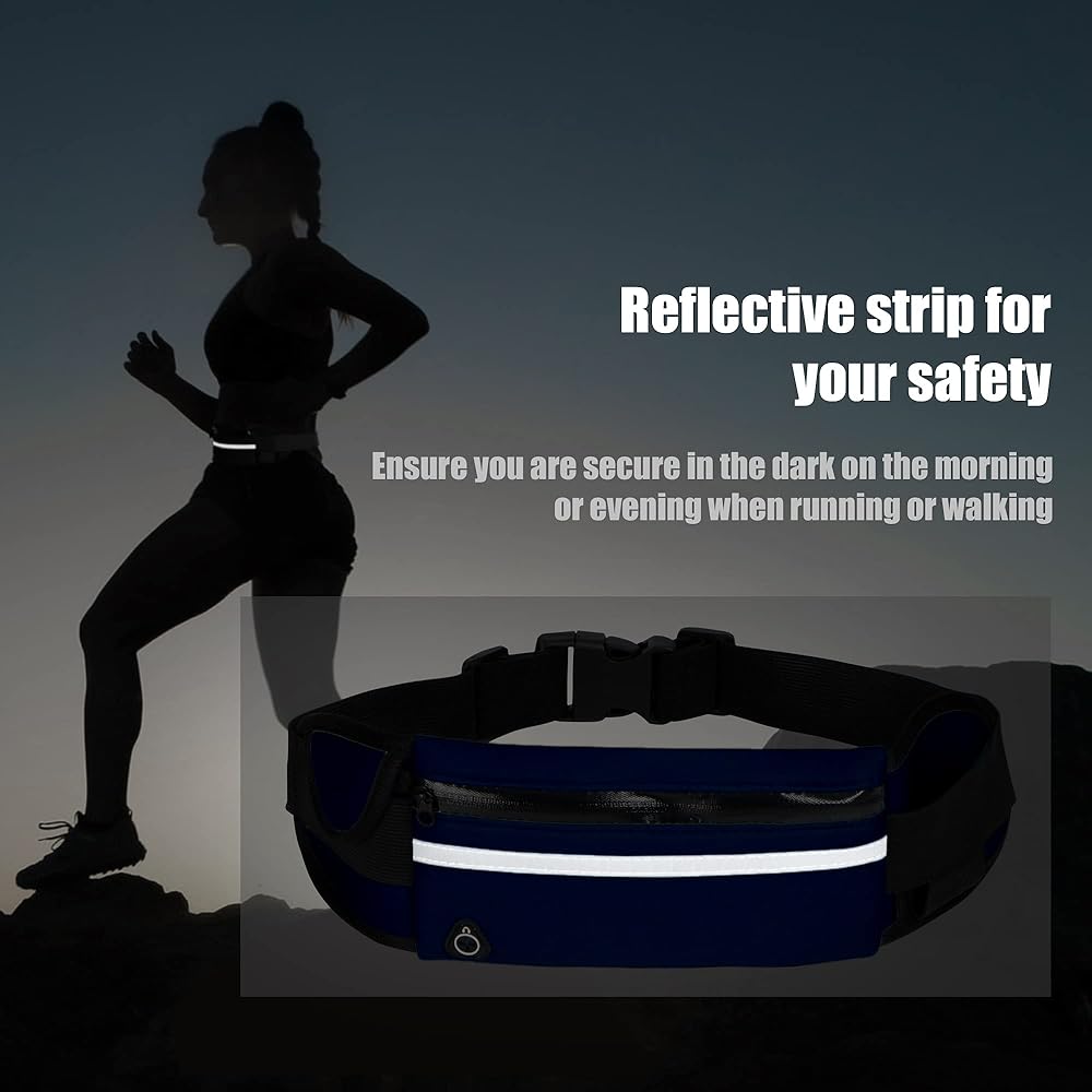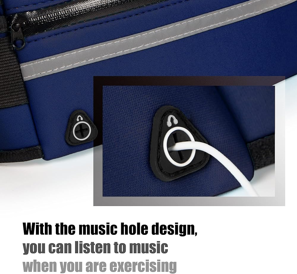 Large Capacity & Reflective Strip:Carries large phones up to 6 inches, passport, bottle of water, power bank, smartphones, keys,ID and other personal items. Designed with reflector for safety and visibility when you jog at night.The 3M reflective stripe in the front pocket is specially designed for triathlons and marathons