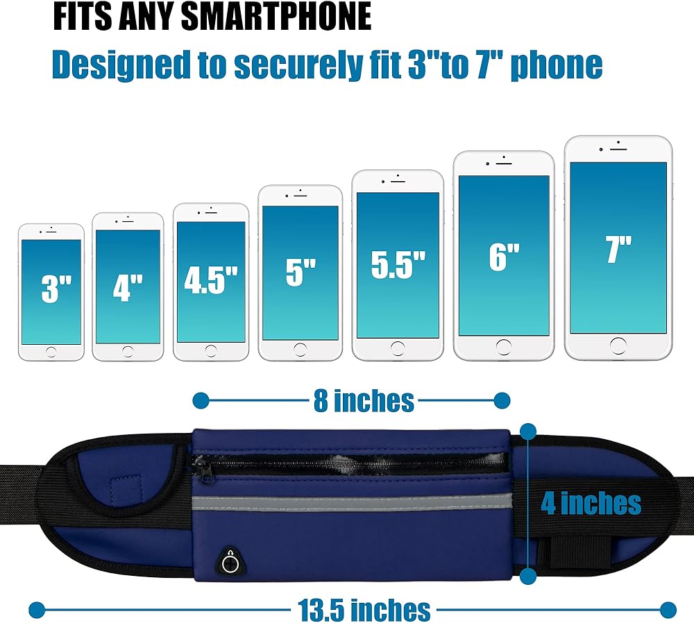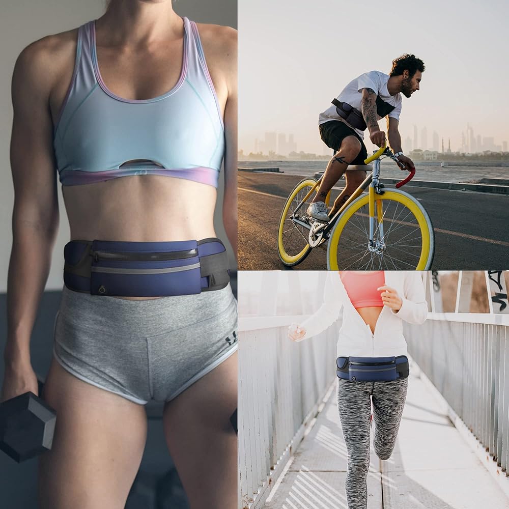 Running Belt Waist Packs,Workout Fanny Pack,Ultra Light Bounce Free Waist Pouch Fitness Workout Belt Sport Waist Pack for Women Men,Adjustable Waistband Bag for All Kinds of Phone (Navy blue)
