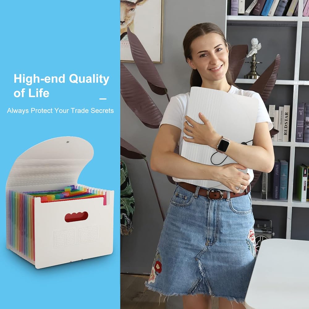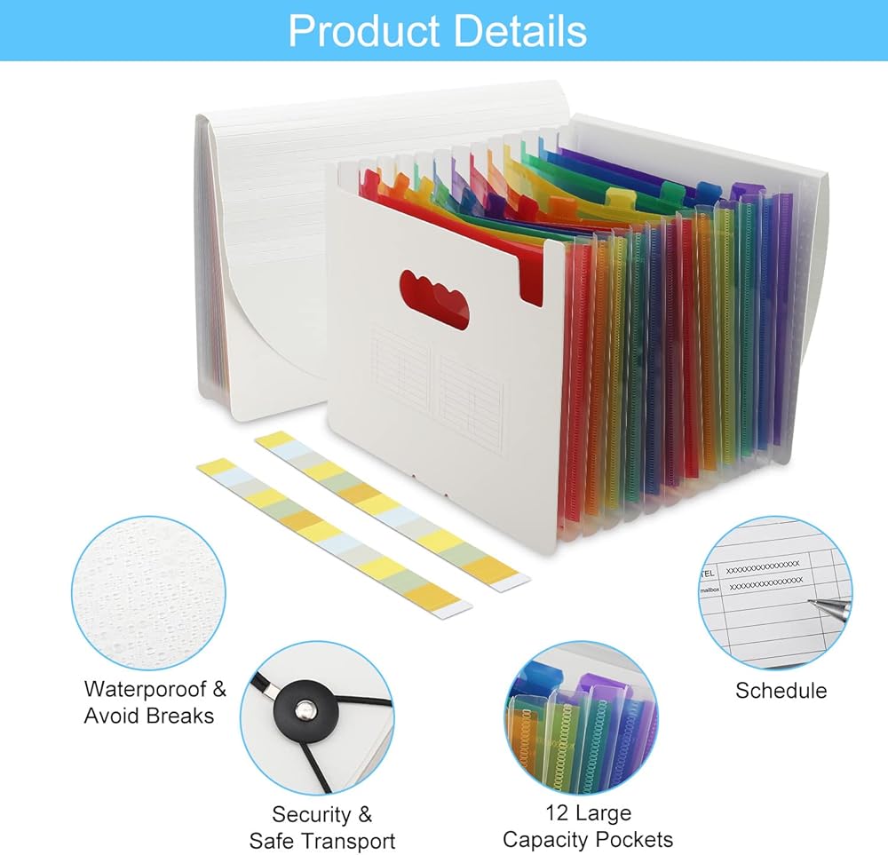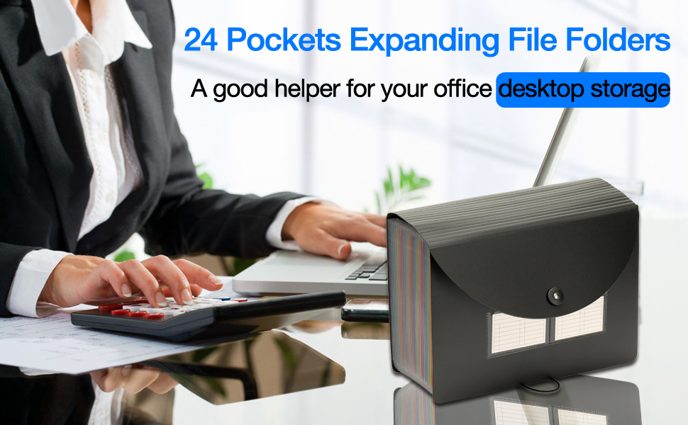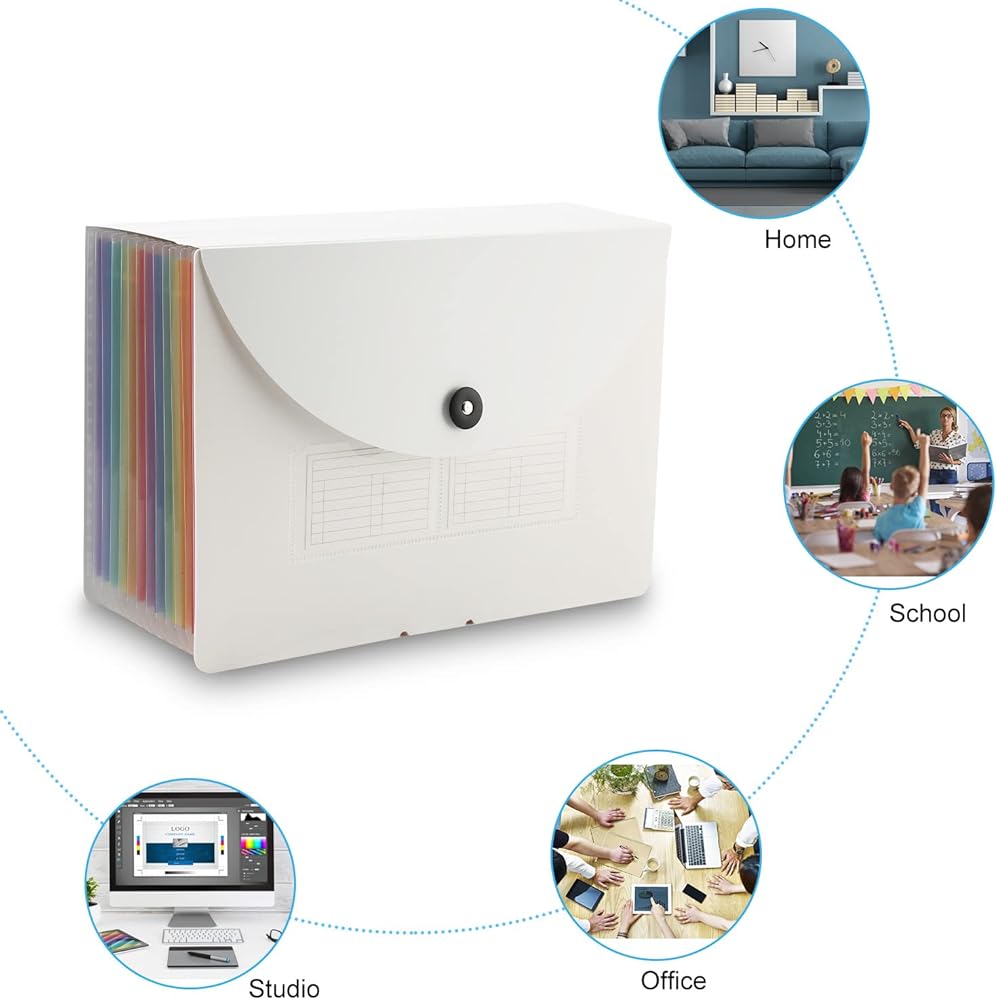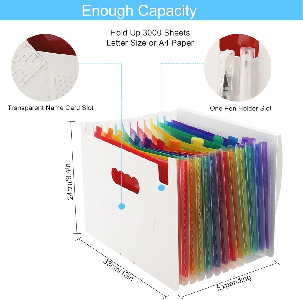 【Large Storage Space】each folder has 24 colors pockets to hold files. This document organizer size is 13''x 10''x 1.2'' .each pocket can hold a large amount of A4 paper easily. The accordion file folder can be stretched pretty far, more than 2 feet. 24 pockets allow you to store more than 3000-4000 sheets of paper documents.