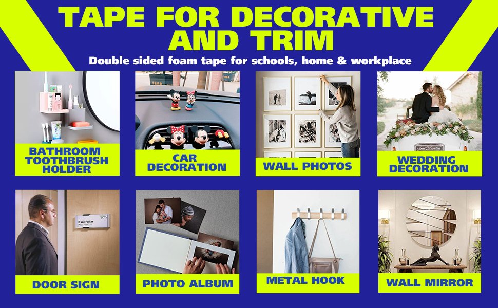 HOLDING AN EVENT? IDEAL FOR HANGING SIGNS, banners and posters; Perfect for arts and crafts projects, photo frames,, nameplates, signs, doors, windows decoration etc... Every workplace or school should have our double sided adhesive tape handy; Are you showcasing your home? Realtors love this removable heavy duty double sided mounting tape. Even works as foam insulation tape.