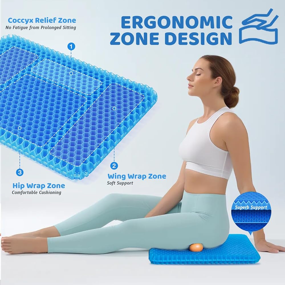 Large Gel Seat Cushion, Office Chair Cushion for Long Sitting - Back Hip Tailbone Pain Relief Cushion, Egg Seat Cushion Desk Chair Pads for Cars Wheelchair