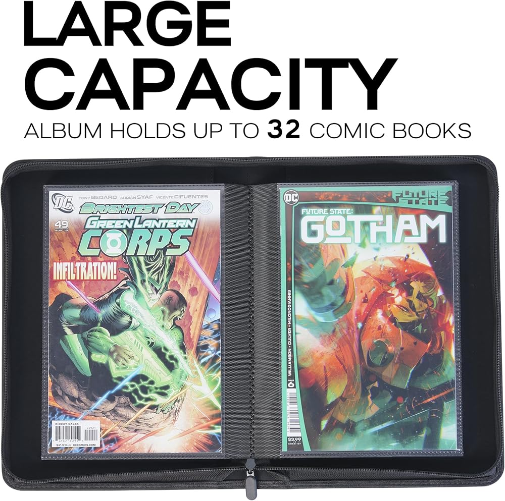 📖 · 𝗔𝗿𝗰𝗵𝗶𝘃𝗮𝗹 𝗦𝗮𝗳𝗲 𝗼𝗳 𝗖𝗼𝗺𝗶𝗰 𝗕𝗼𝗼𝗸 𝗕𝗶𝗻𝗱𝗲𝗿 - Built in acid-free pages to hold 32 comic books, This comic book storage binder makes your comic books tucked away safely and keeps them in mint condition. The pages are sturdy to withstand tears and scratches and ultra clear for display.