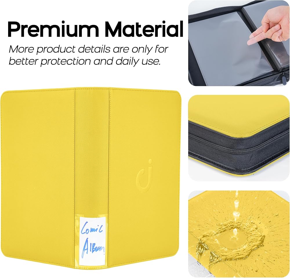📖 · 𝗦𝘂𝗽𝗲𝗿𝗶𝗼𝗿 𝗣𝗿𝗲𝘁𝗲𝗰𝘁𝗶𝗼𝗻 𝗳𝗼𝗿 𝗖𝗼𝗺𝗶𝗰 𝗕𝗼𝗼𝗸𝘀 - Features padded, ultra rigid exterior case to prevent bending and spills, and elastic strap to keep your cards from falling out. This water-resistant comic book storage binder offers maximum security and trusted durability for your comic book.