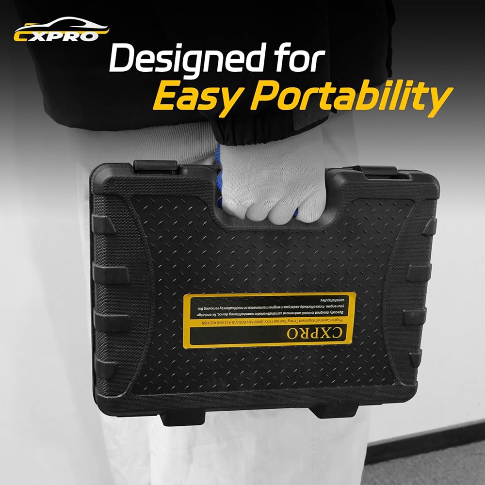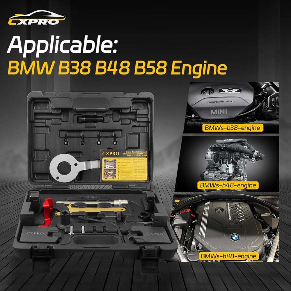The CXPRO Engine Timing Tool Set for BMW Mini B38 A15 A12 B48 A20 B58 offers precise engine timing, compatibility with specific BMW Mini engine models, high-quality construction, ease of use, and a comprehensive set of tools. These advantages make the tool set a valuable asset for professionals and enthusiasts working on BMW Mini engines, ensuring accurate and efficient timing adjustments for optimal engine performance and longevity.