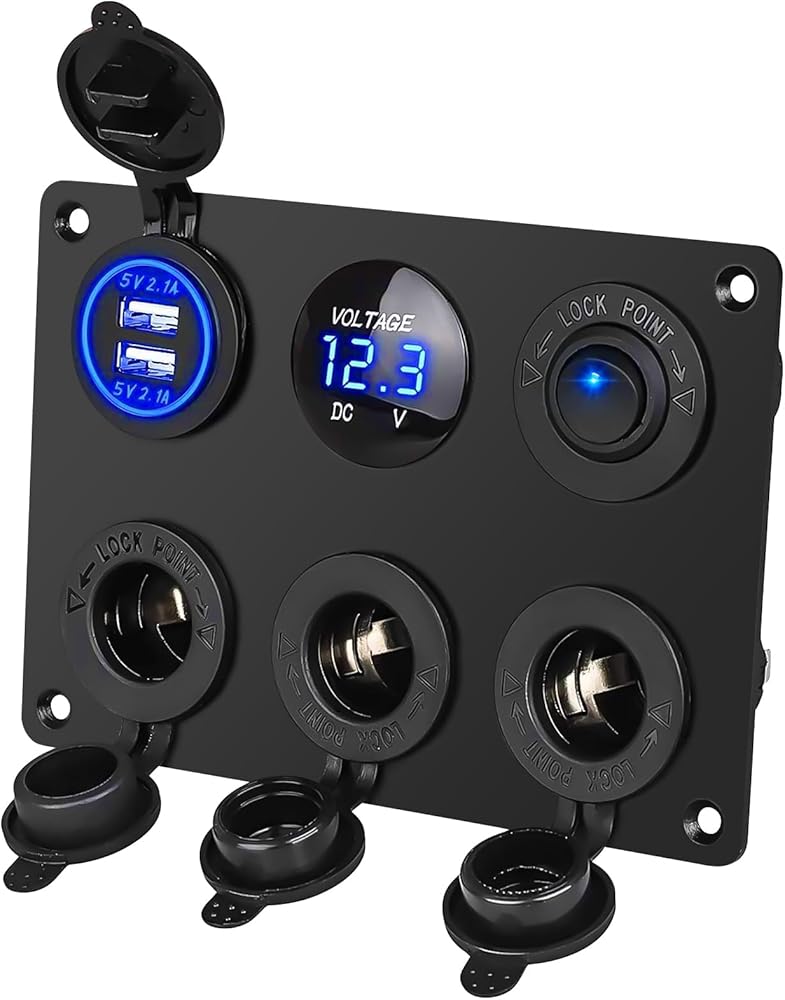 6 IN 1 MARINE PANEL:This 12V socket panel is designed with a 3-Socket 12v cigarette lighter outlet+ 12v rv USB outlet + LED digital display voltmeter + LED rocker toggle switch. Convenient for installation and operation. Also detachable to replace other charger sockets or anything else that fits.