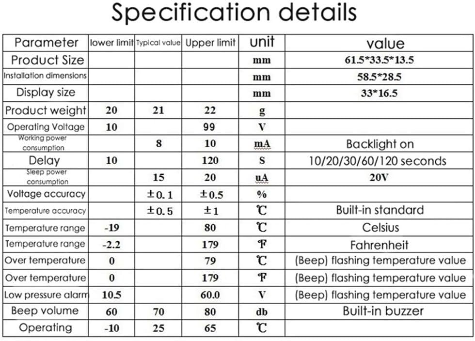 - MULTIFUNCTION---can meantime show the battery capacity & voltage and Celsius temperature/ Fahrenheit.