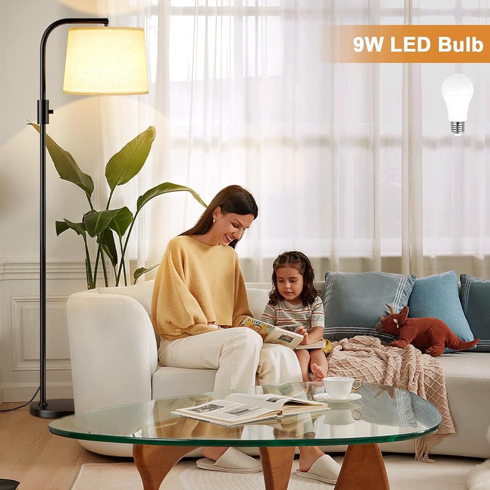 [9W LED Light Bulb Included] - Floors lamp for living room bright lighting comes with E26 base bulb, 3000K(warm white), which can save 90% energy. Lampshade is made of farbic material, it can obstruct the part of lighting from the bulb effectively, which makes the lighting cozy and soft. Whether you want to read, write or simply relax, the standing lamp provides ample illumination without straining the eyes.