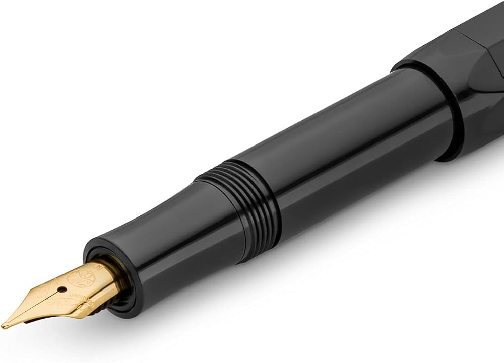 Kaweco CLASSIC SPORT Fountain Pen Black with 23 Carat Gold-Plated Steel Nib and Iridium Tip for Ink Cartridges I Sport Fountain Pen 13 cm I Nib: M (Medium)