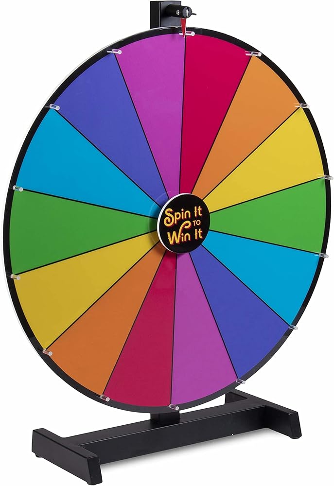 The high quality acrylic surface makes clean up a breeze. Write specific rewards, game rules, and more on each colorful slot. Travel friendly size makes transportation to your vendor stand, party, or office easy. At 24" in diameter, this prize wheel is the perfect option for your home, office desk, or kiosk! Fits perfectly on tabletops at your trade show event!