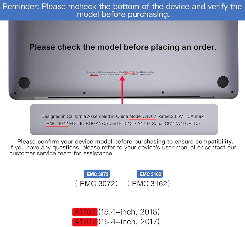 1.Color: Space Gray;Compatible Model: Pro Retina A1707 2016-2017 YEAR EMC 3072 EMC3162 Size: 15.4”. inches.Resolution: 2880*1800(220ppi).Warranty: 3 months