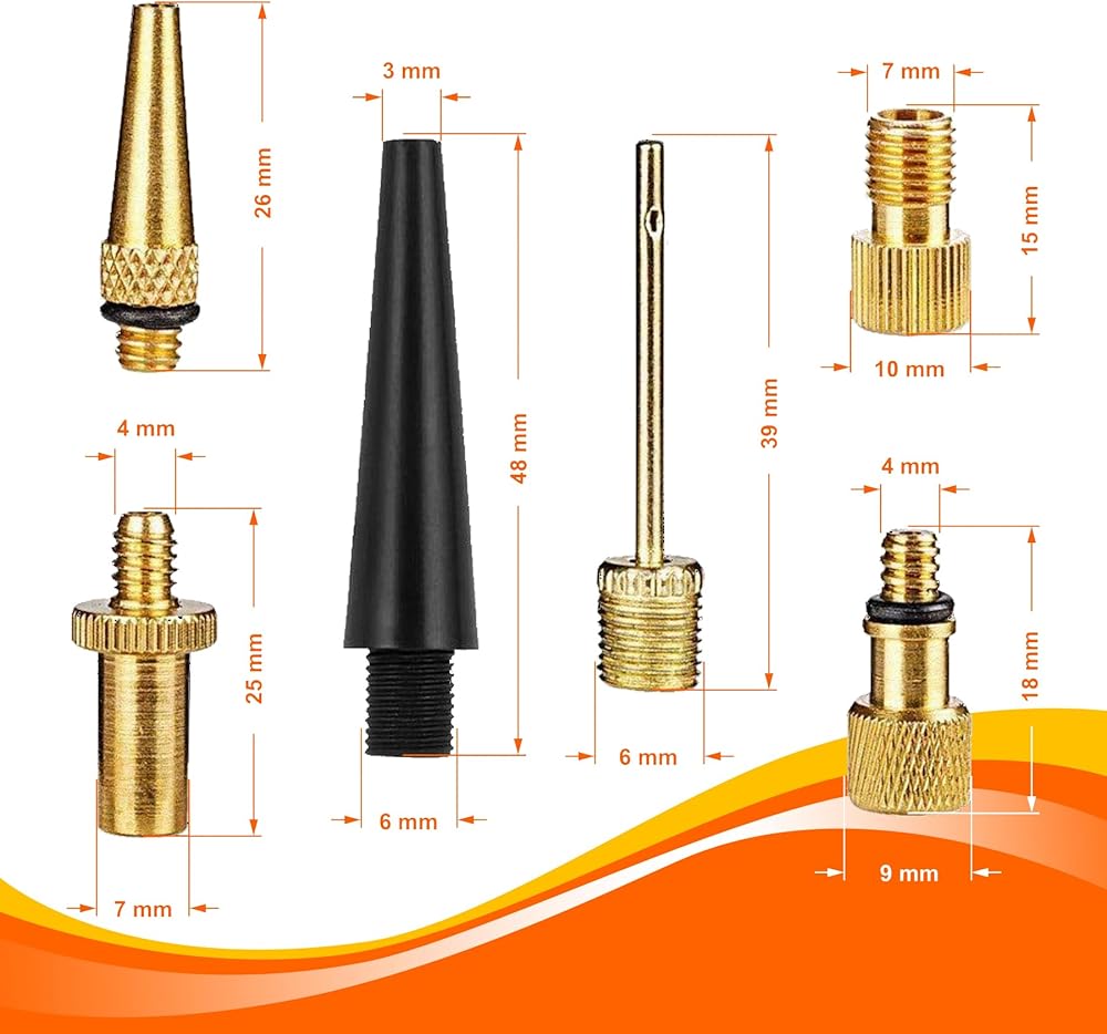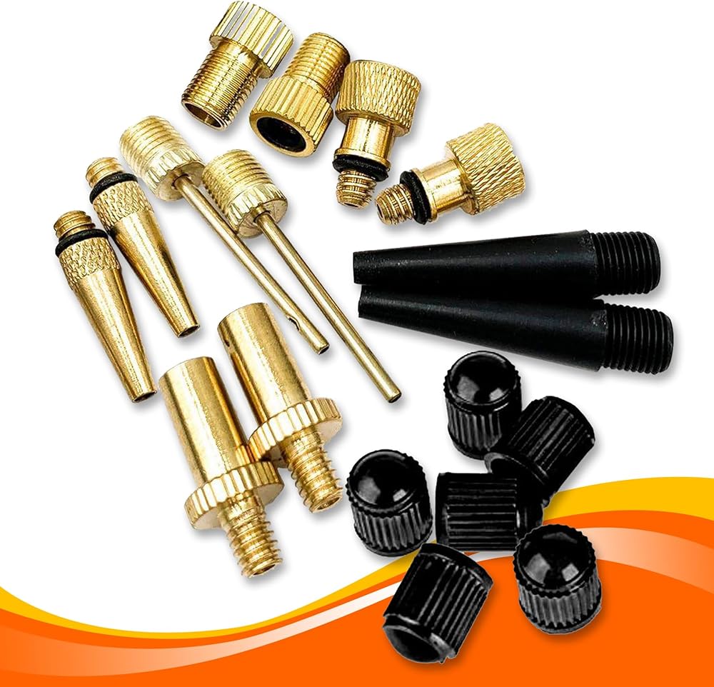 Introducing the Bike Valve Adapter Kit by Mobi Lock - your ultimate solution for hassle-free inflation! This pack includes 10 high-quality valves, 6 caps, and 2 ball pump needles, making it a versatile and essential tool for all your biking and sports needs. With our kit, you can effortlessly convert your bike valves between Presta, Dunlop, and Schrader valves. No more struggling to find the right adapter or carrying multiple pumps for different valve types. Our adapters ensure a secure and airtight connection, allowing you to inflate your tires quickly and efficiently. Not only does our kit cater to your biking needs, but it also includes 2 ball pump needles for inflating sports balls. Whether you're a soccer enthusiast or a basketball player, our kit has got you covered. Inflate your sports balls with ease and get back in the game in no time. Crafted with durability in mind, our valves and caps are made from high-quality materials, ensuring long-lasting performance. The precision-engineered design guarantees a tight seal, preventing any air leakage during inflation. Experience convenience and versatility like never before with the Bike Valve Adapter Kit by Mobi Lock. Whether you're a professional cyclist, a sports enthusiast, or simply someone who wants to be prepared for any inflation situation, this kit is a must-have. Don't let valve compatibility limit your adventures - grab your Bike Valve Adapter Kit today and enjoy seamless inflation every time.