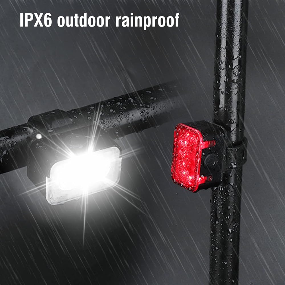 MULTIPLE MODES: Extremely bright LED lights for your new bike light set, one-touch switch for headlights and taillights, high-medium-low-SOS-alarm flashing 5 modes for white lights, high-medium for red lights - Low - slow flash - fast flash - marquee 6 modes.