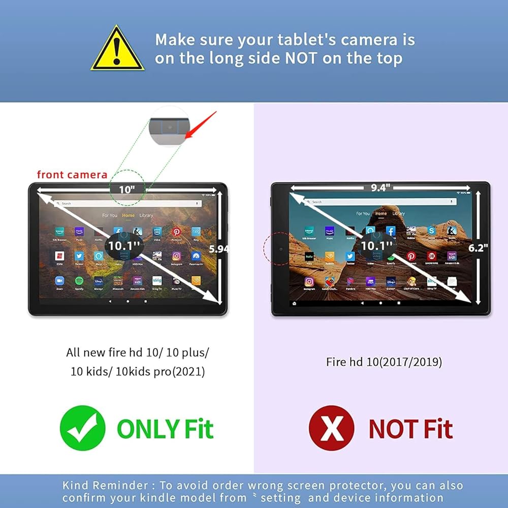 [Note Compatibility] The screen protector is designed to fit the latest Amazon Fire HD 10 tablet models, which include the Fire HD 10 Tablet 2021, Fire HD 10 Plus, Fire HD 10 Kids, and Fire HD 10 Kids Pro Tablet (11th Generation, 2021 Released). It is not suitable for earlier models, like the Fire HD 10 2019 2017 Released and Fire HD 10 Kids Editions 2019 2018 Released.