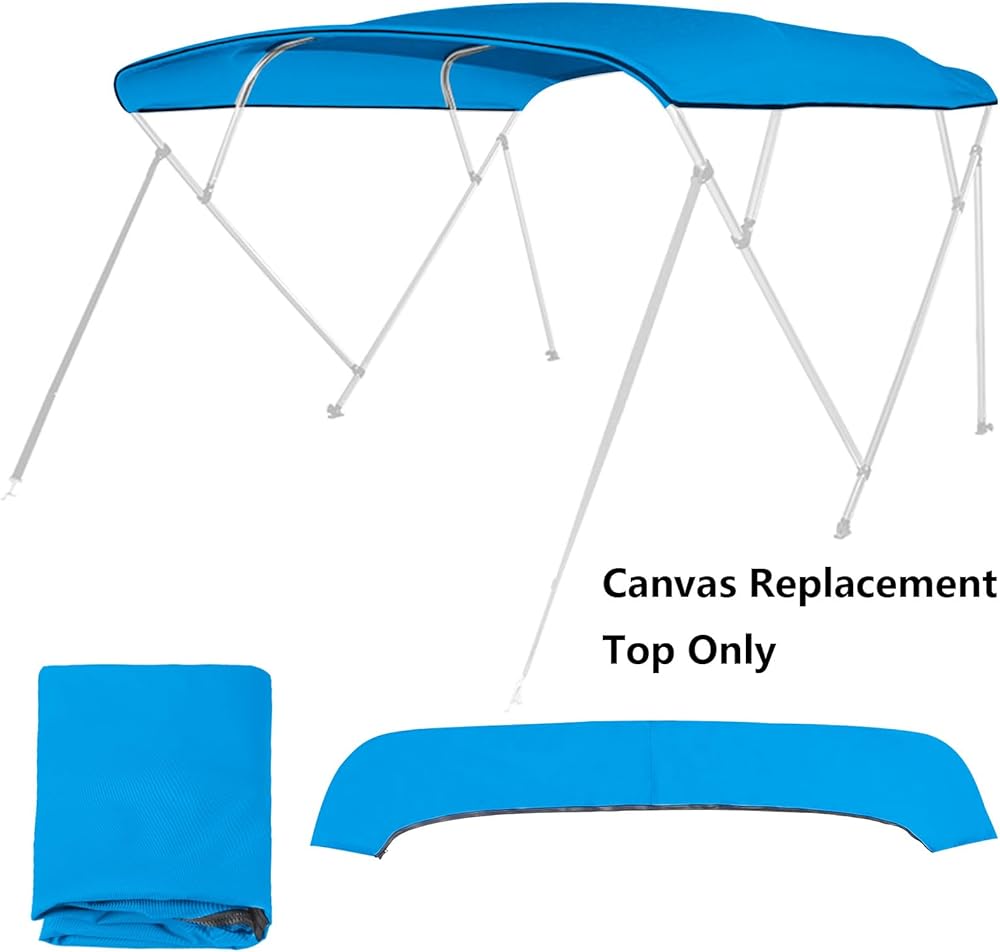 UV-Resistant Bimini Top Replacement Cover - Made of waterproof, breathable marine grade 600D solution-dyed polyester canvas with UV coating offer UV protection from Sun Damage. Compatible and use as replacement fabric for the same size pontoon boat, deck boat, fishing boat bimini tops. Convenient light cutout to fit cover accessories.